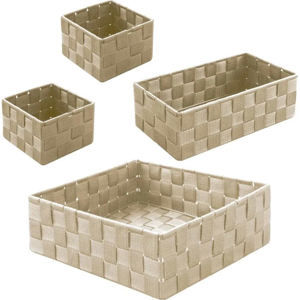 SET 4 PEZZI CONTENITORI BEIGE SCATOLA IN TESSUTO ORGANIZER PORTA OGGETTI 79063