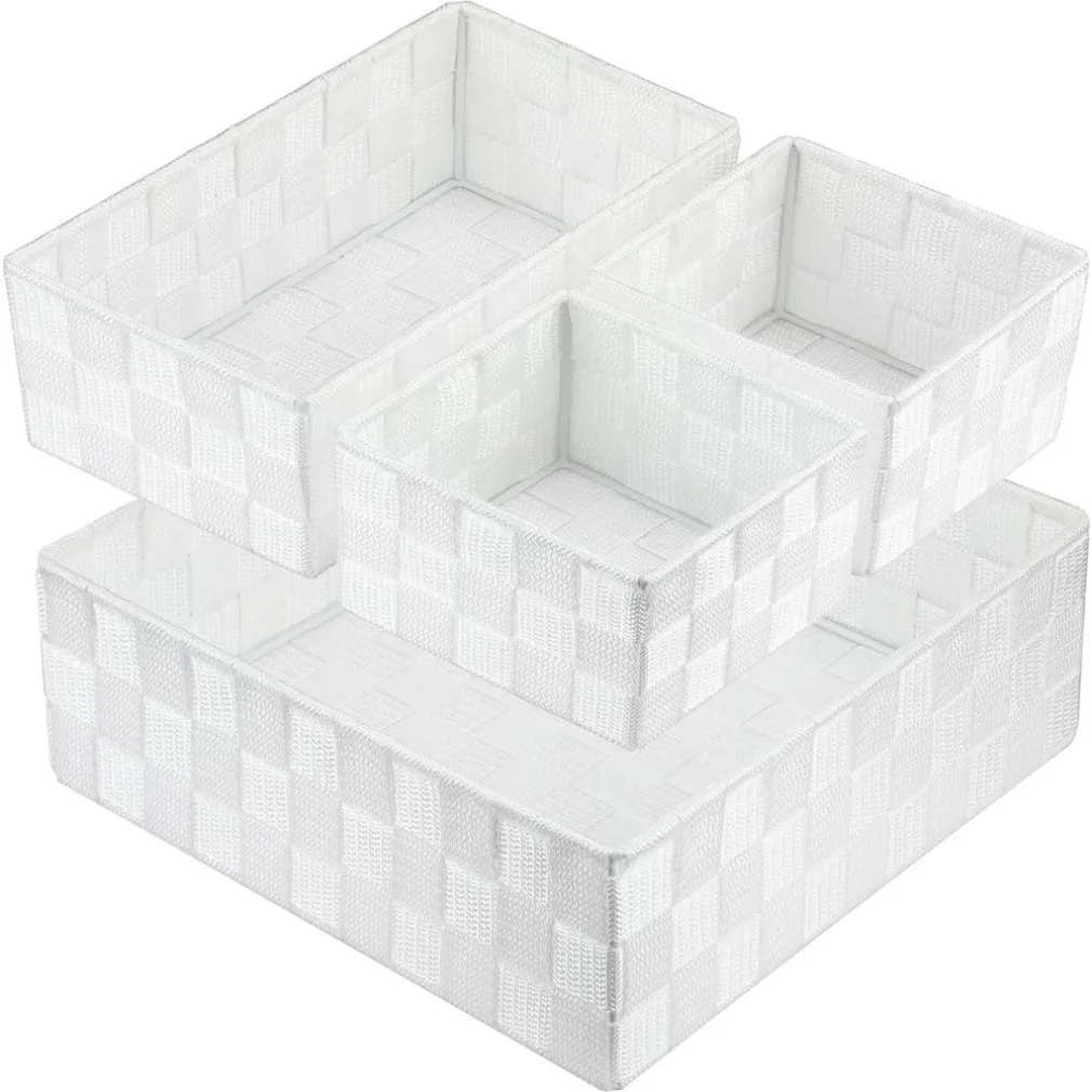SET 4 PEZZI CONTENITORI BIANCO SCATOLA IN TESSUTO ORGANIZER PORTA OGGETTI 79061