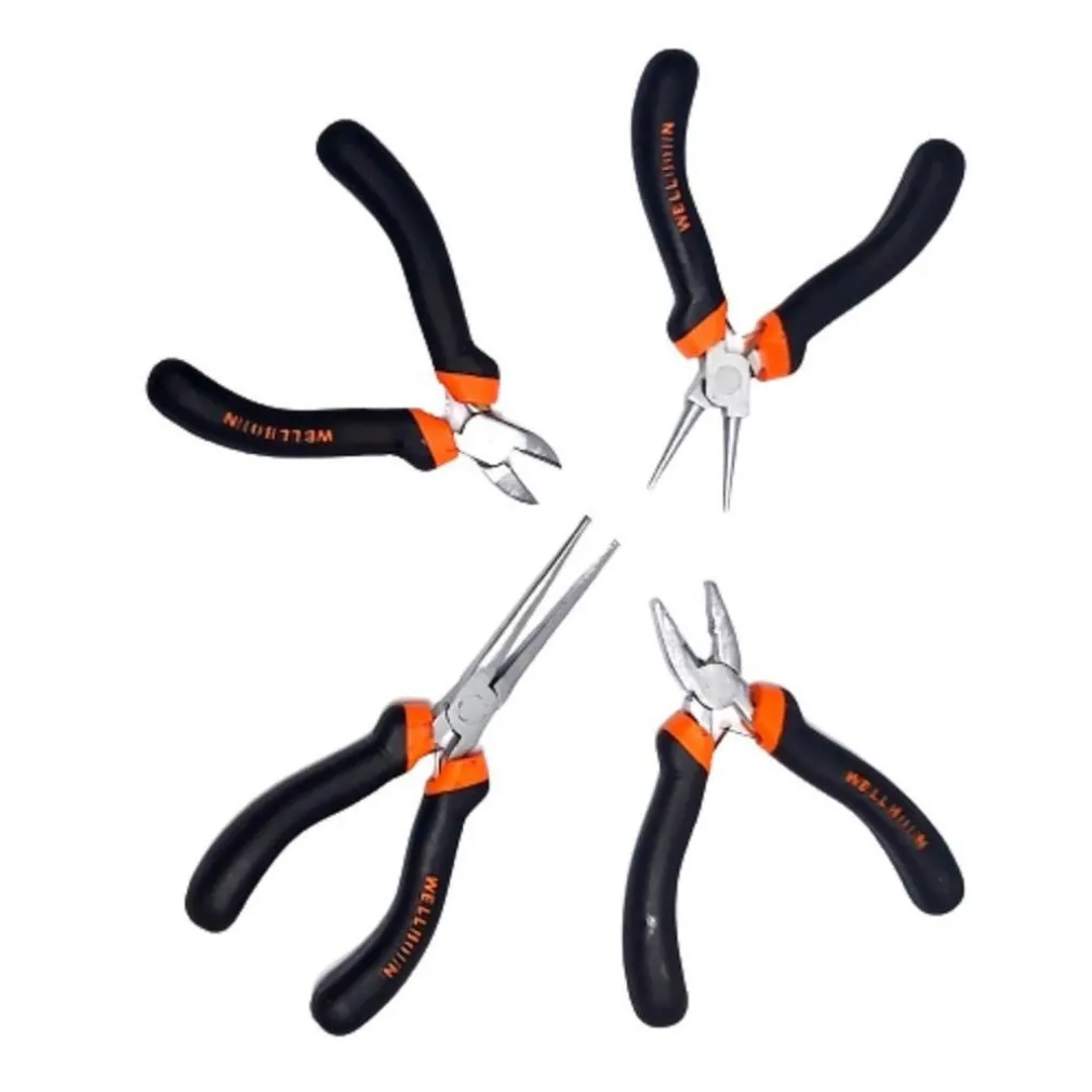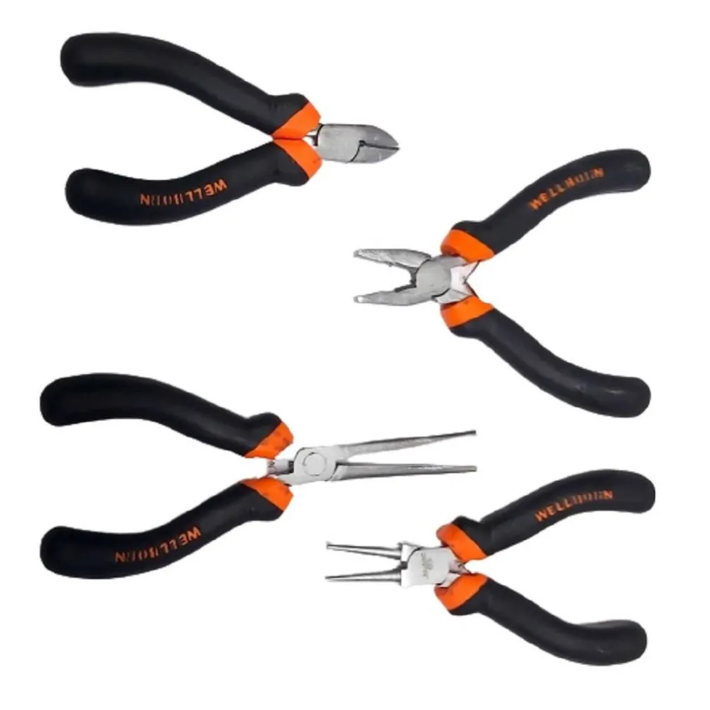 - 4 mini pinze assortite: Questo set include una varietà di mini pinze, ciascuna progettata per una specifica funzione. Che tu stia affrontando un lavoro di elettronica, di piccola riparazione o di bricolage, avrai sempre la pinza giusta a portata di mano.