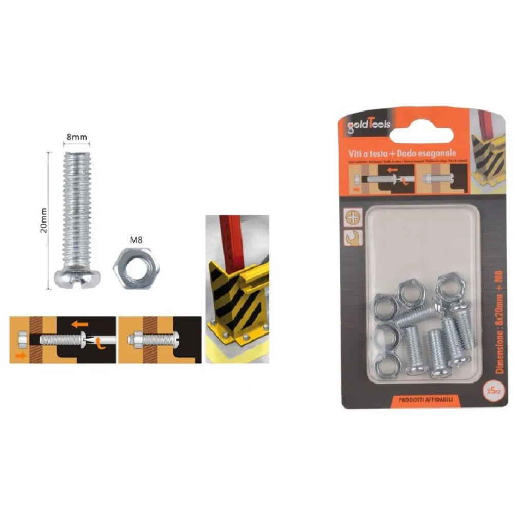 - La confezione include 5 viti con testa a croce tonda e i relativi dadi esagonali M8, fornendo tutto il necessario per completare il tuo progetto con facilità e convenienza.