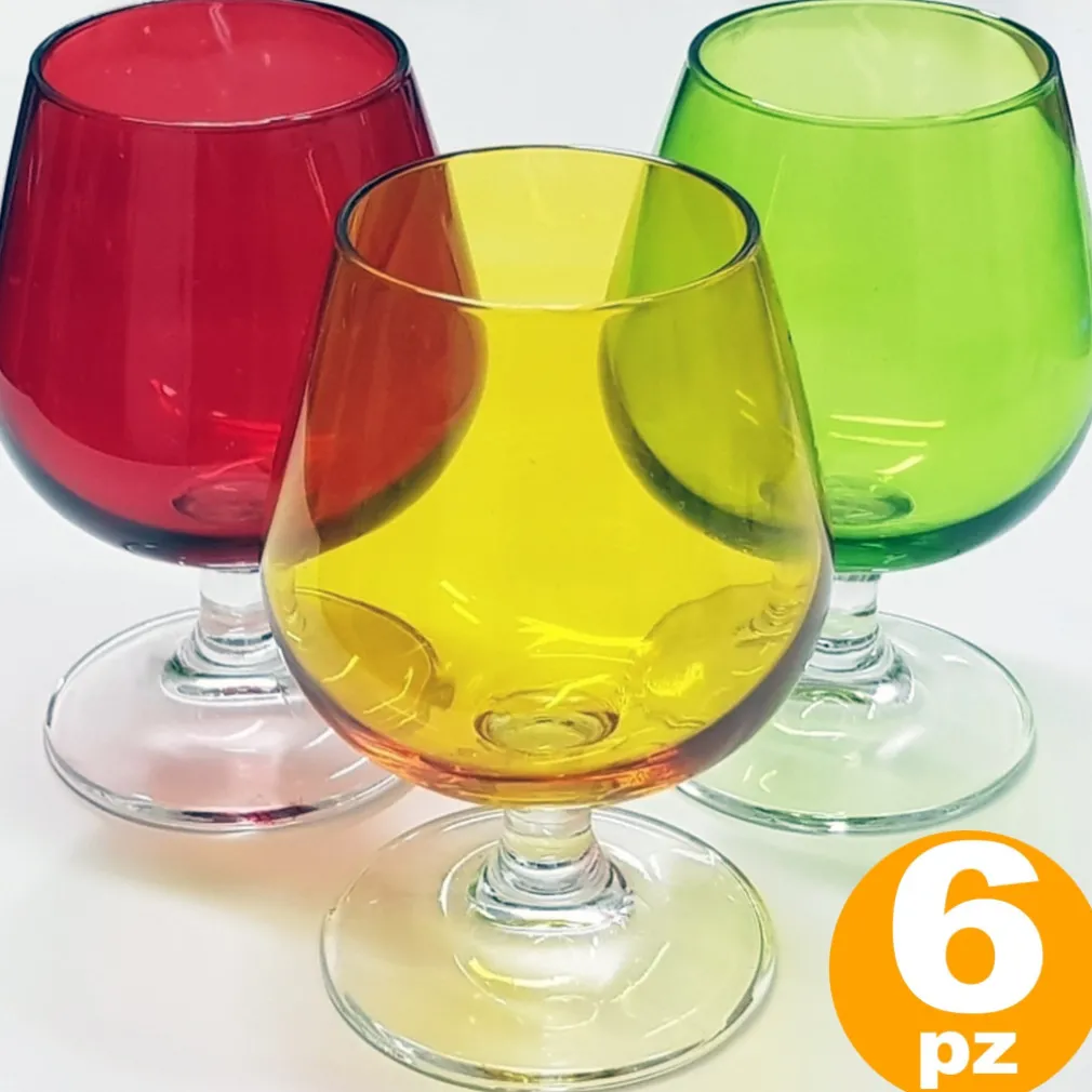 SET 6 BICCHIERI BICCHIERE GLOBO SWEET COLORATI IN VETRO BEVANDA COGNAC LIQUORE DISTILLATI CHUPITOS CICCHETTI CICCHETTO SHOT.