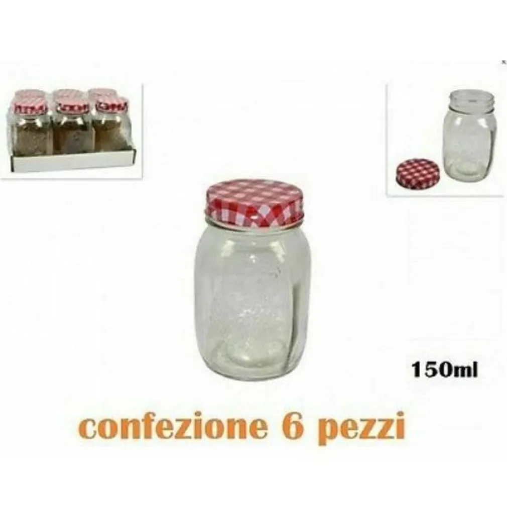 Set 6 Pezzi Barattolo Vetro Contenitore Con Tappo Colorato Tovaglia 150ml