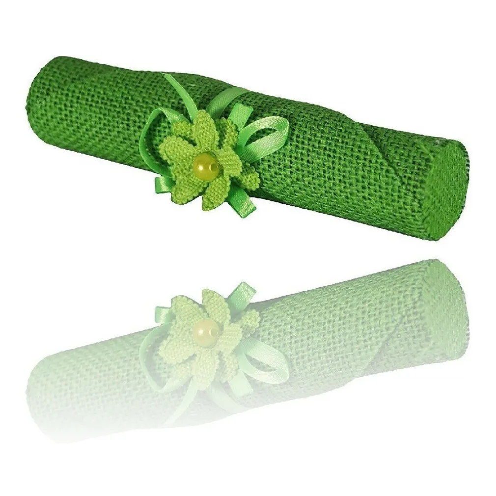 Set 6 Pezzi BOMBONIERA BOMBONIERE Pergamena Juta Verde Fiore Porta INVITO PORTACONFETTI Porta Confetti Nascita Festa Compleanno PROMESSA