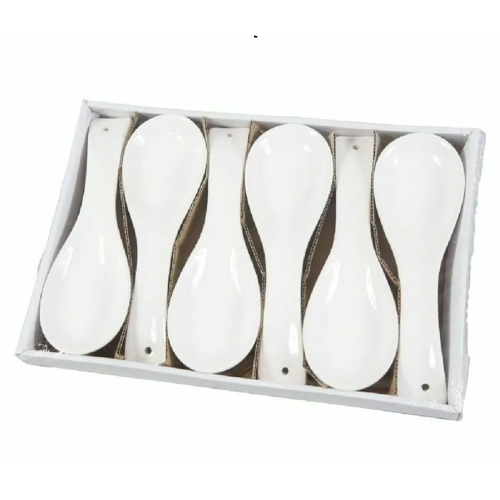 Set 6 Pezzi Poggiamestolo Poggia Mestolo In Ceramica Bianca Cucina.