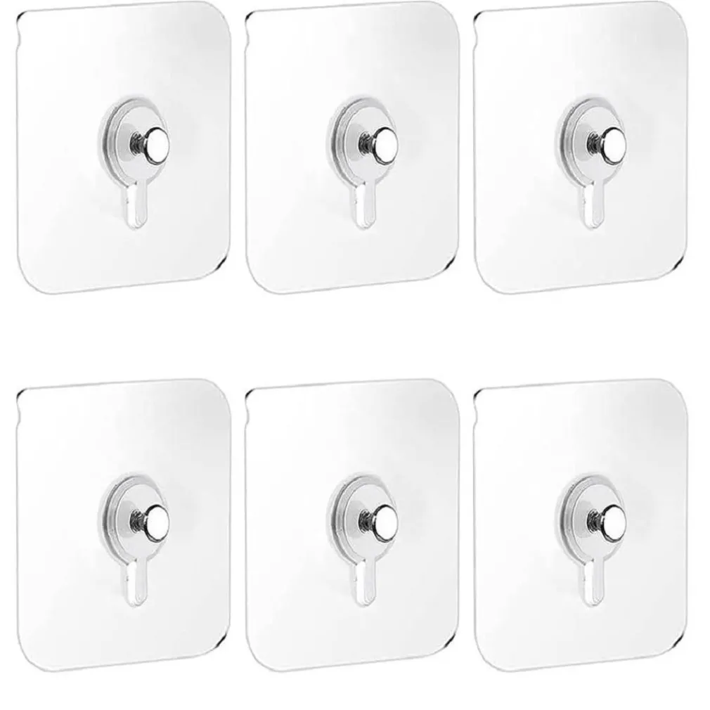 La confezione contiene 6 pezzi di ganci adesivi, la dimensione è 6 cm × 6 cm, il colore è trasparente ed è più invisibile.