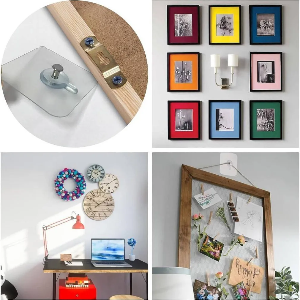 La superficie degli appendi quadri adesivi è realizzata in materiale PC trasparente, che risulta più invisibile e più bello dopo l’uso.