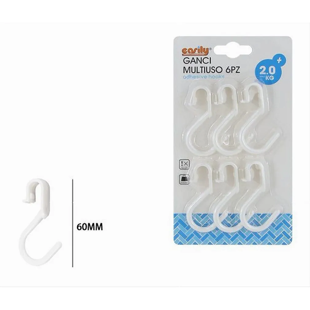 SET 6 PZ GANCI MULTIUSO FORMA S SALVASPAZIO PER CUCINA BAGNO CASA BIANCHI 87365