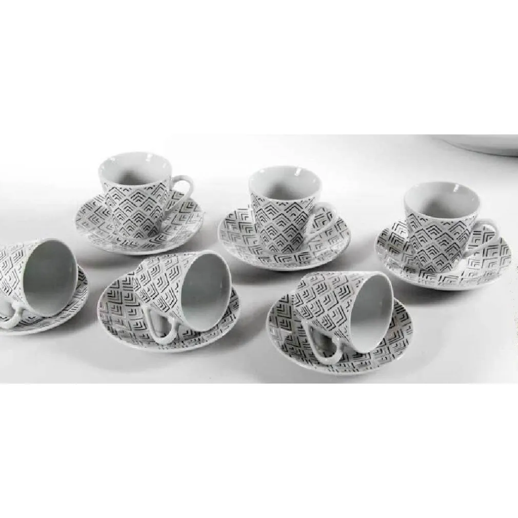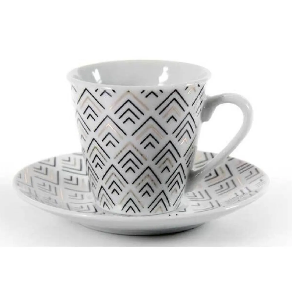 SET 6 PZ TAZZINE CAFFÈ CON 6 PIATTINI BIANCO DECO IN PORCELLANA DECORATE 780776