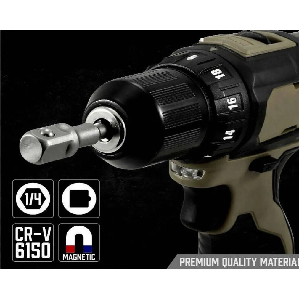- Adattatore da 4 pezzi da 1/4″: lunghezza 25 mm, lunghezza 30 mm, lunghezza 50 mm, lunghezza 65 mm — può essere convertito in testa quadrata da 6,35 mm;