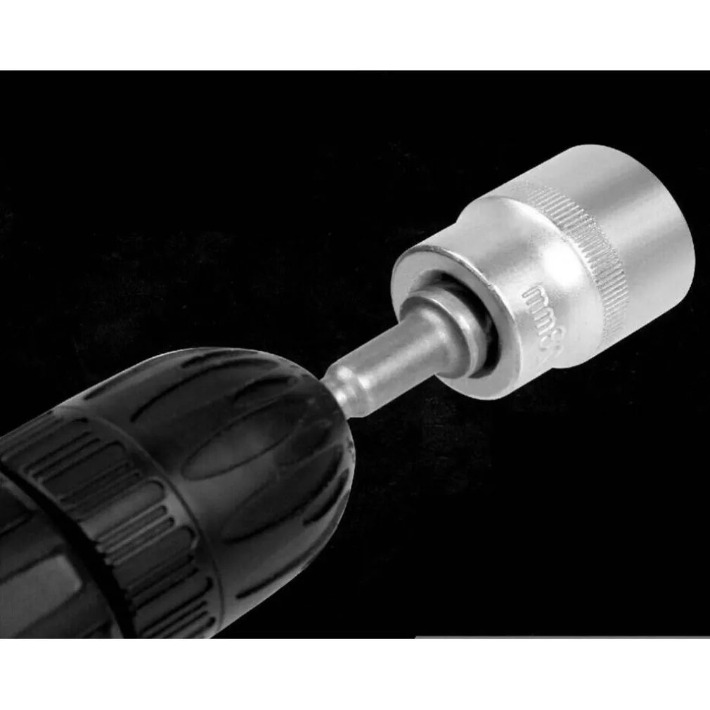 Adattatore a bussola esagonale a 9 pezzi con supporto magnetico per punte. Acciaio al cromo vanadio di alta qualità. Adattatore esagonale per Square Drive: semplifica la lavorazione del legno. Perfetto per avvitatore a percussione o trapano e consente di sostituire il cricchetto con un utensile elettrico. Le bussole per avvitatore a impatto pneumatico con gambo esagonale da 1/4″ si adattano a tutti i mandrini a cambio rapido e ai mandrini standard. Questo set di trapano avvitatore a percussione è adatto per un cacciavite o un impugnatura per cacciavite elettrico (foro esagonale o mandrino a tre griffe).
