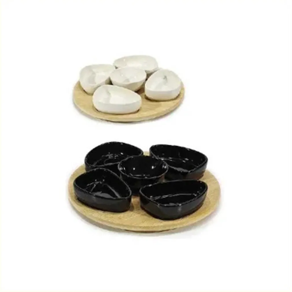 Grazie al design naturale in bambù e alla base girevole, potrai servire antipasti, salse, tapas o snack in modo dinamico, ordinato e raffinato, con la comodità di avere ogni ciotola facilmente accessibile.