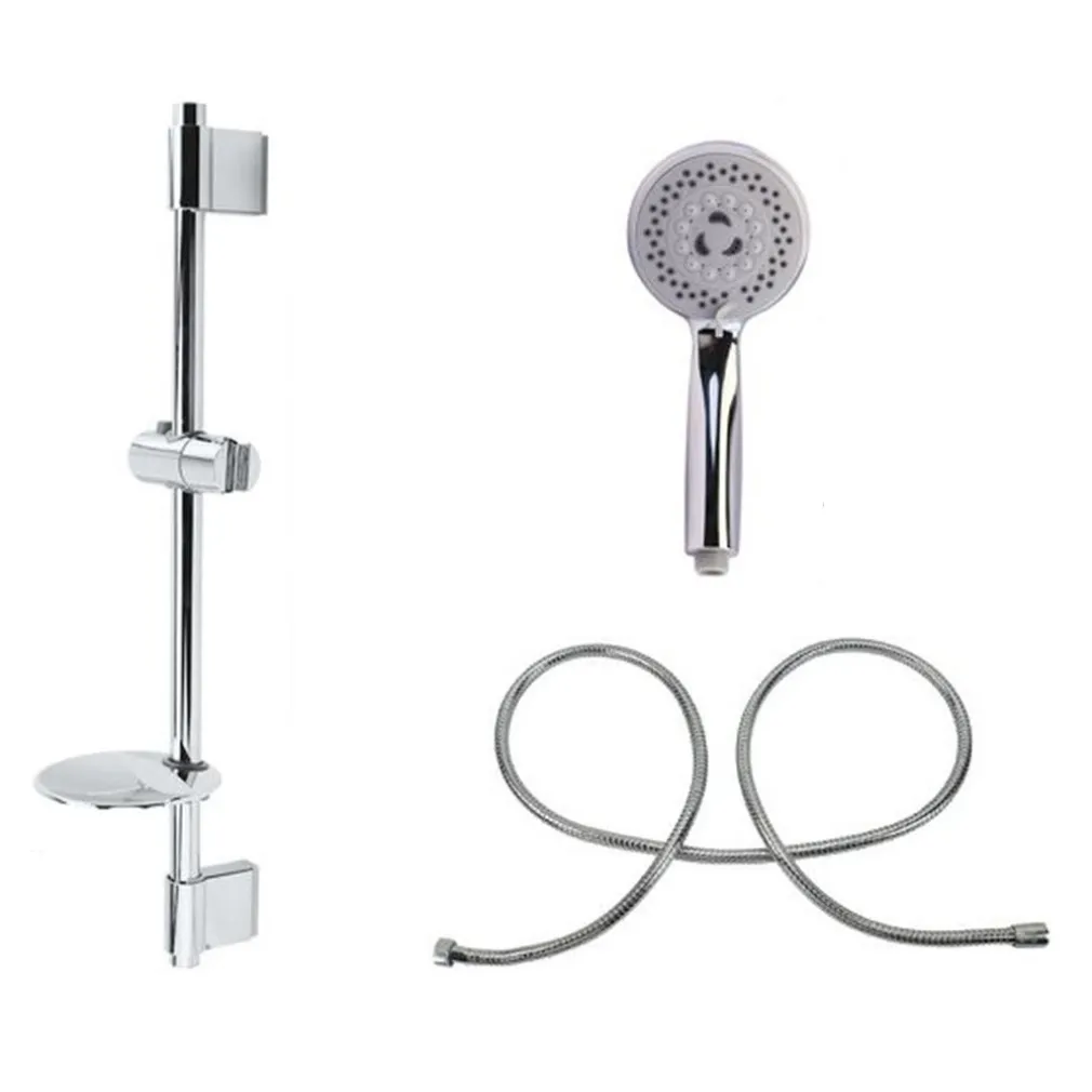 - Cosa include il set? Asta doccia, doccetta, tubo flessibile e portasapone.