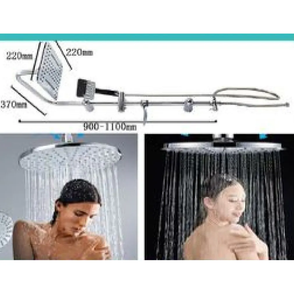 Il soffione inclusi nel set è di dimensioni generose, con una misura di 220x220mm, che garantisce una copertura ottimale dell’area della doccia, permettendoti di godere di un flusso d’acqua ampio e confortevole. La colonna della doccia ha una misura totale regolabile da 900mm a 1100mm, consentendoti di adattarla alle tue esigenze di installazione e di altezza. Inoltre, il tubo flessibile, lungo 150cm, offre la flessibilità necessaria per una comoda gestione dell’acqua durante l’uso.
