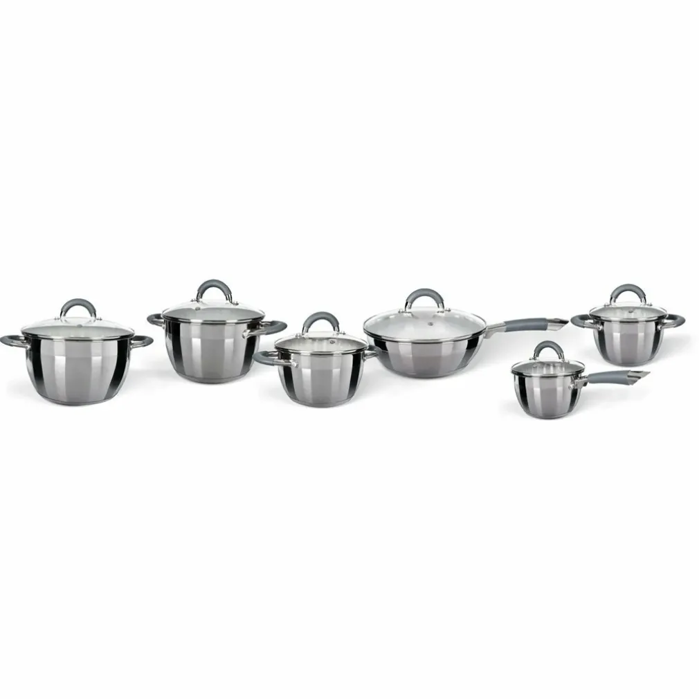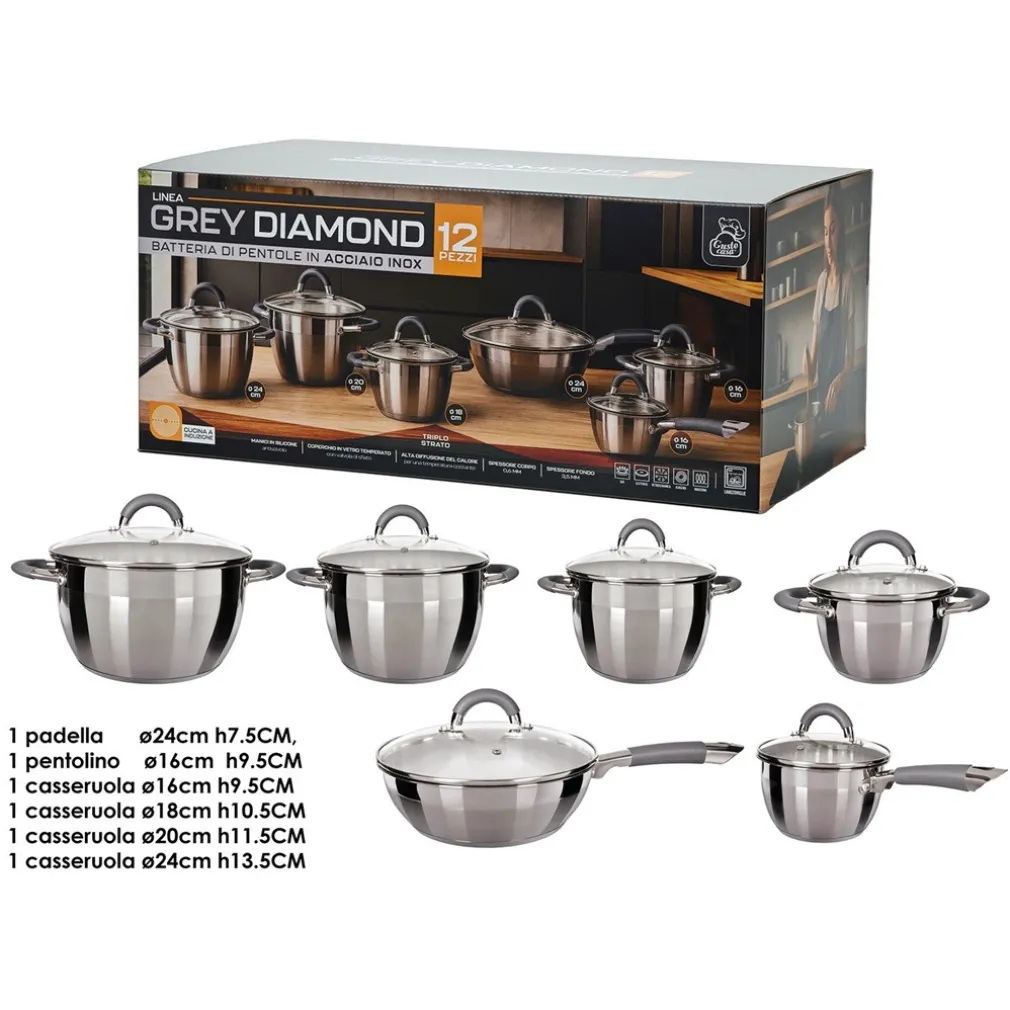 SET BATTERIA DI PENTOLE A INDUZIONE 12PZ IN ACCIAIO INOX MANICI IN SILICONE ANTISCIVOLO