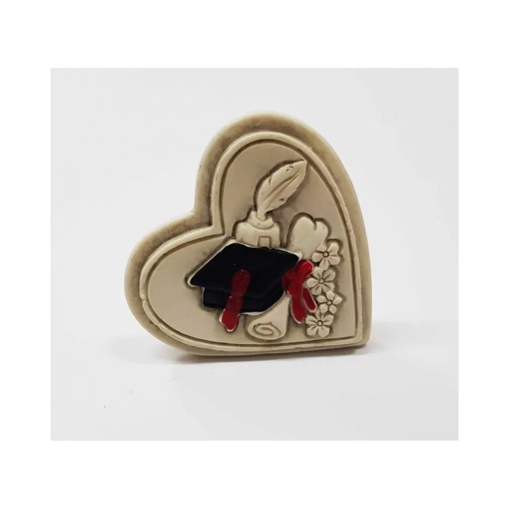 - Design Unico: Ogni bomboniera rappresenta un cuore stilizzato con un cappello da laurea e una piuma, simboli di successo e dedizione.