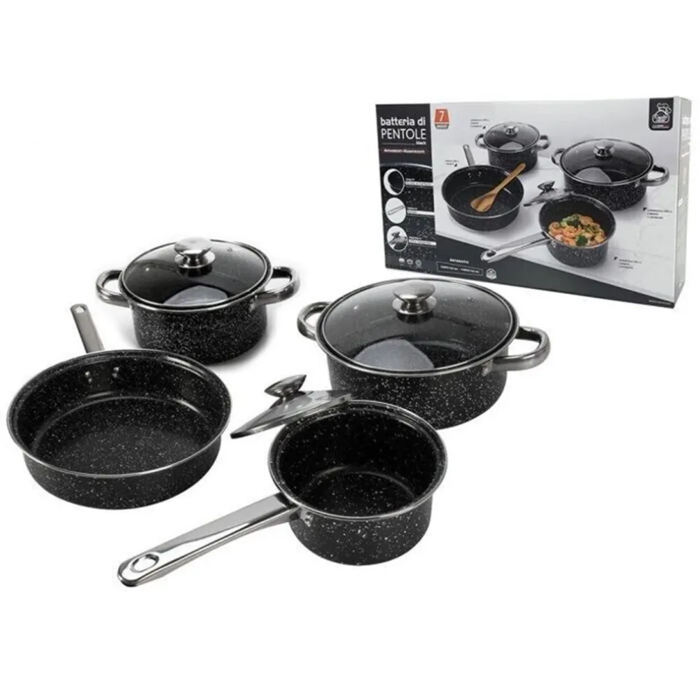 🔥 SET DA 7 PEZZI BATTERIA DI PENTOLE ANTIADERENTI MARMORIZZATE AL CARBONIO ANTIGRAFFIO – L’eccellenza in cucina è servita! 🔥