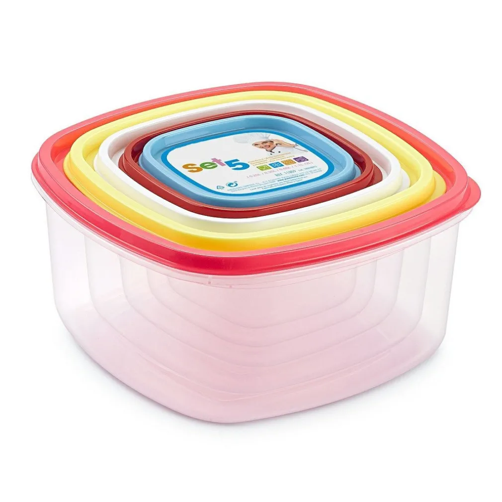 Set di 5 contenitori in varie misure, si impilano comodamente uno dentro l’altro occupando pochissimo spazio. I contenitori ermetici per alimenti sono adatti per contenere e conservare alimenti. Contenitore adatto per l’uso in forno a microonde, lavastoviglie, frigo e freezer. Contenitore per alimenti impilabile, facile da aprire e chiudere grazie al coperchio ad apertura facilitata.