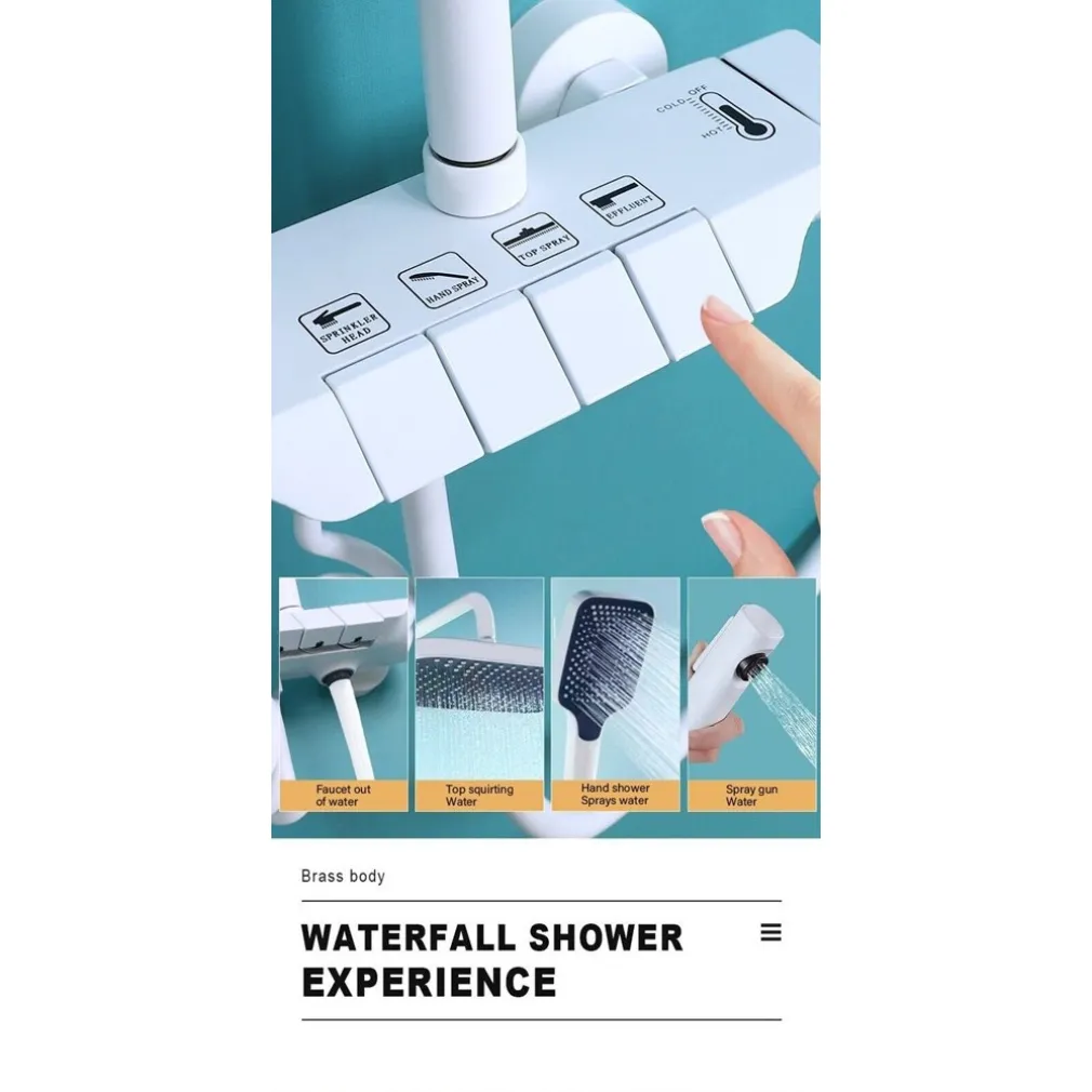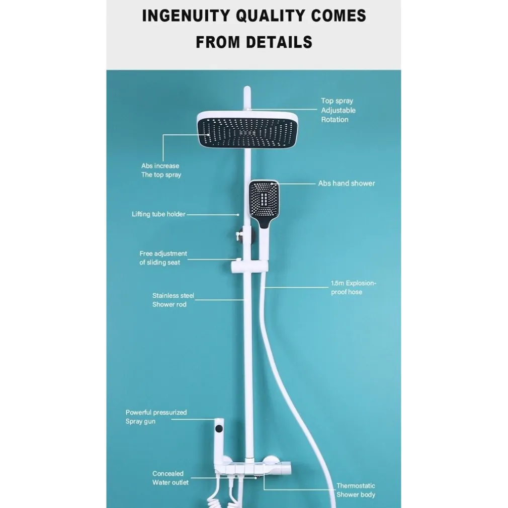 Il set include una colonna doccia con soffione fisso, una doccetta mobile, una doccetta bidet, un rubinetto miscelatore termostatico, un flessibile doccia da 59 pollici, un kit di installazione e il manuale di istruzioni.