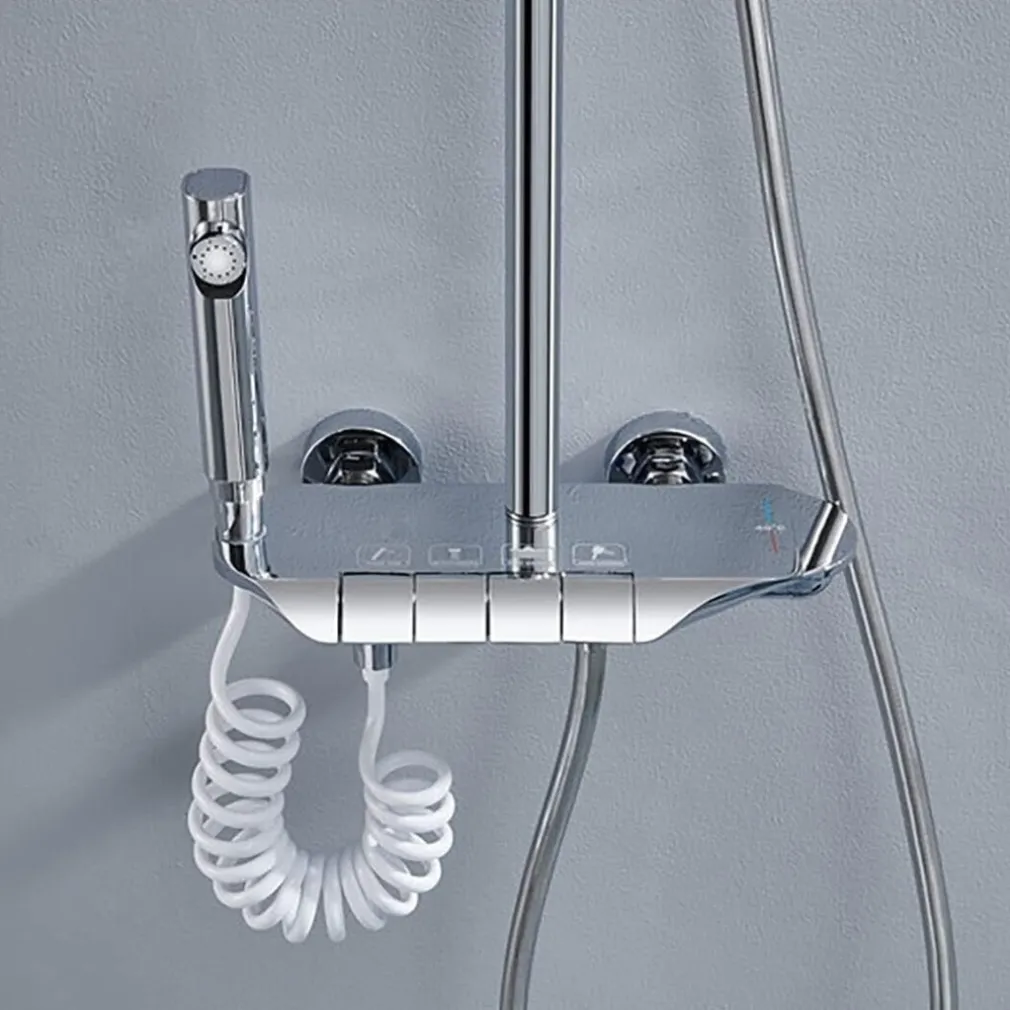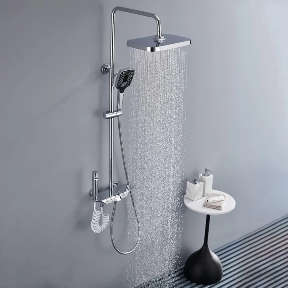 Il set include un soffione fisso, una doccetta mobile, una doccetta bidet, un miscelatore termostatico, un’asta doccia in acciaio inossidabile e un flessibile doccia in PVC.