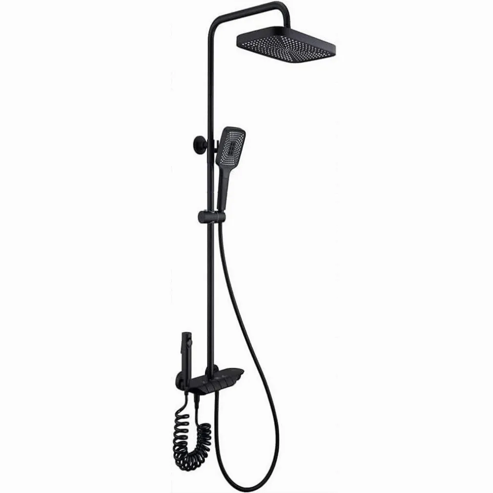 Il set doccia include una colonna doccia, un miscelatore termostatico, un soffione fisso, una doccetta mobile e una doccetta bidet.
