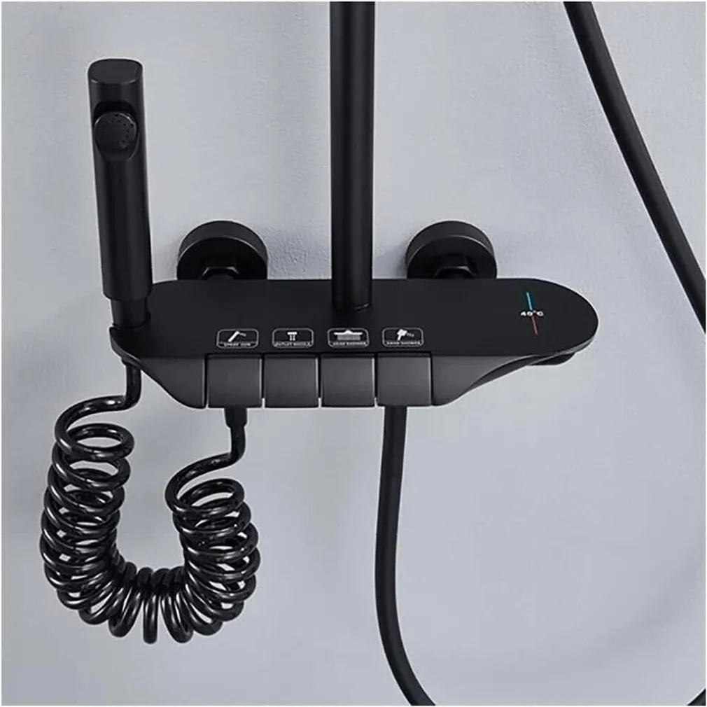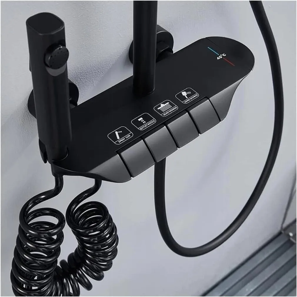 Desideri un bagno moderno e funzionale? Il nostro Set Saliscendi Colonna Doccia Bagno Rubinetto Soffione Doccia Mobile e Doccetta Bidet Nero 87344 è ciò che fa per te! Questo set offre tutto il necessario per un’esperienza di doccia lussuosa e confortevole, combinando estetica contemporanea e praticità.