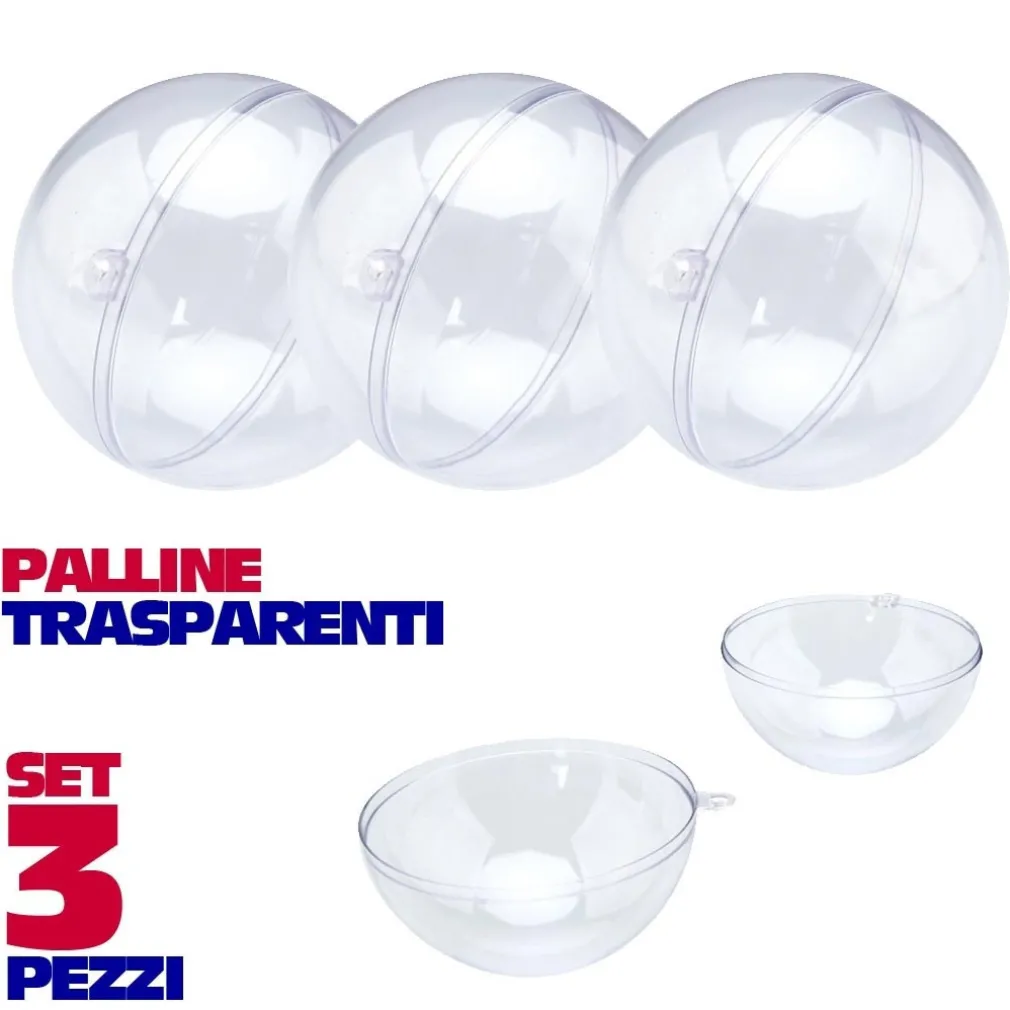 - 1 x Set 3 Pezzi Sfere Natalizie Palline Trasparenti Apribili da Riempire Decorazione Natale diametro 60 mm