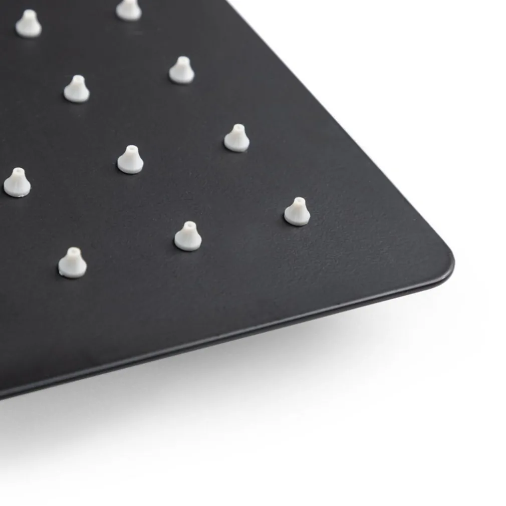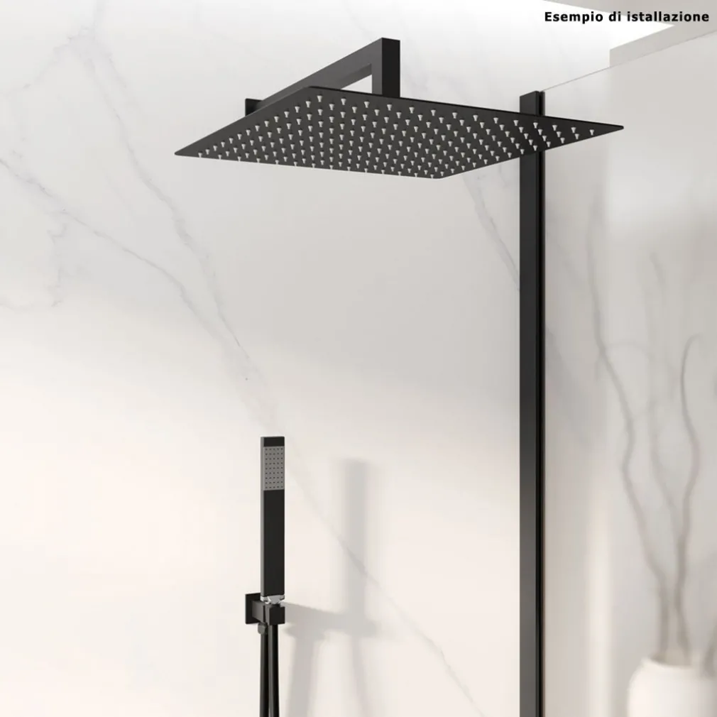 Il design ultra slim e quadrato, combinato alla finitura nera opaca, lo rendono un accessorio elegante e distintivo. Gli ugelli distribuiscono l’acqua in modo uniforme per un’esperienza rilassante e lussuosa.