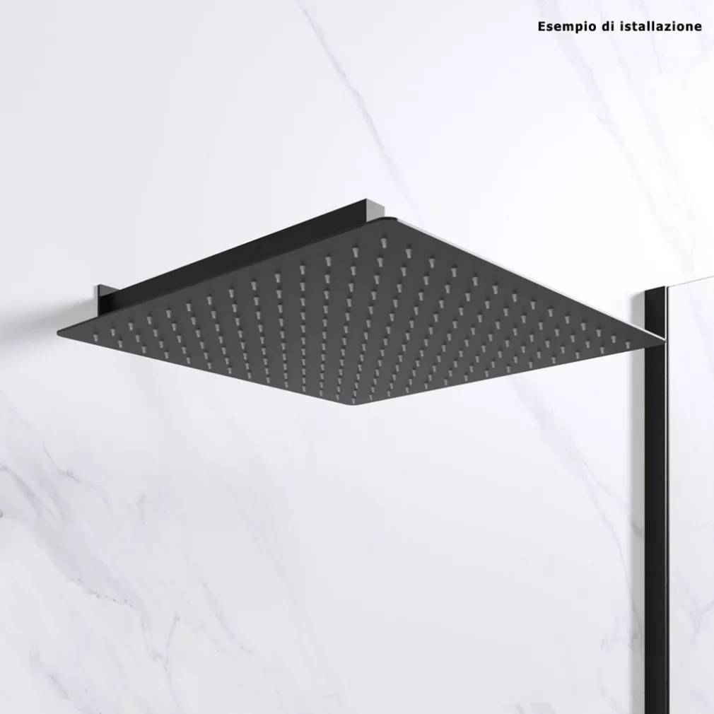 SOFFIONE DOCCIA ULTRA SLIM QUADRATO 25X25CM BAGNO MISCELATORE NERO ATTACCO UNIVERSALE 87883