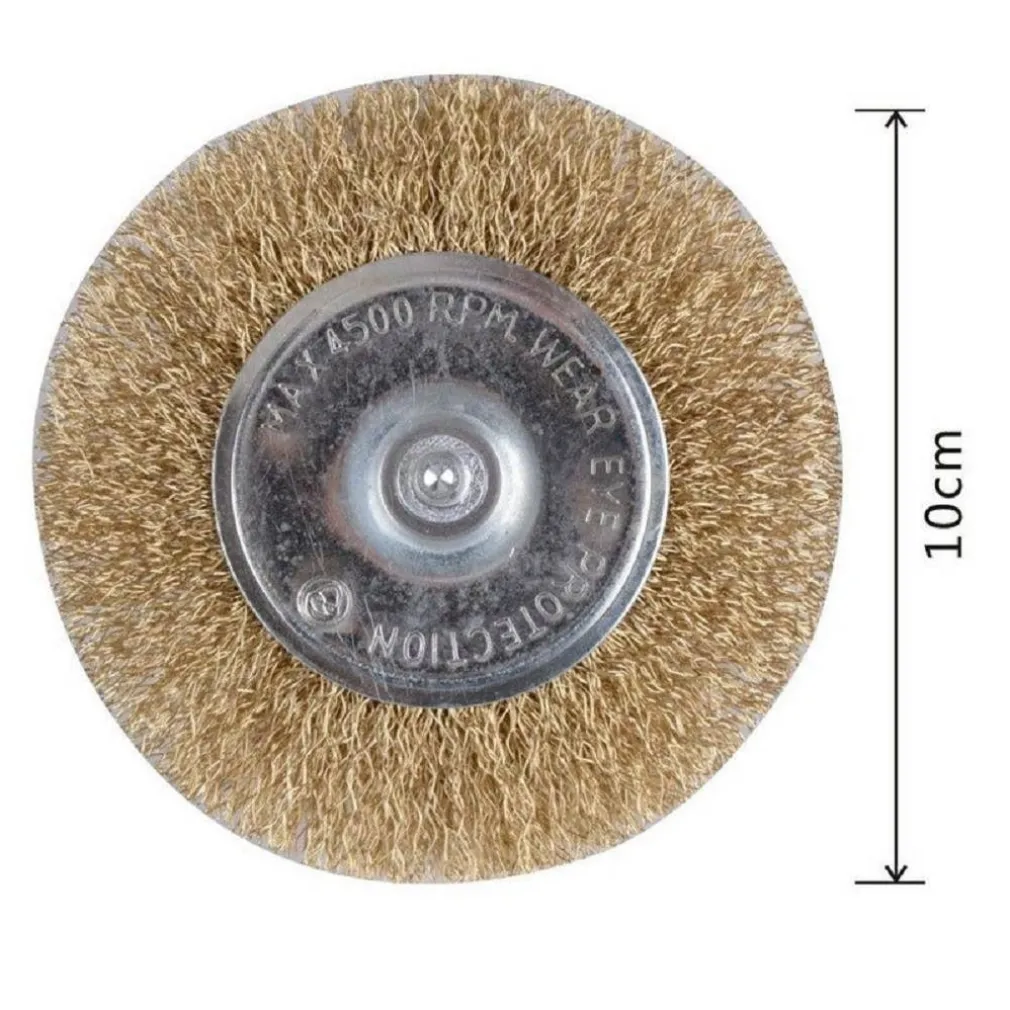 - 1x Spazzola a disco filo in ferro ondulati ottonati con gambo da 100 mm per trapano