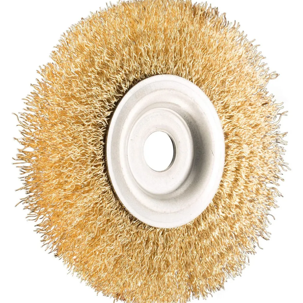 Spazzola mola 150 mm disco con fili in acciaio per smerigliatrice da banco. Prodotto ideale come ricambio della spazzola usurata e quindi da sostituire. Ideale per eliminare sbavature, e rimuovere incrostazione, ruggine, corrosione e incrostazioni.