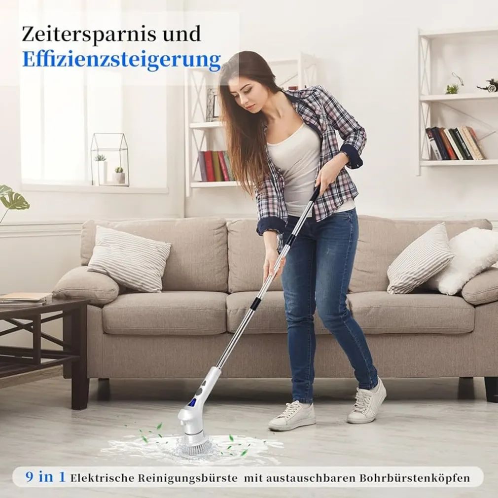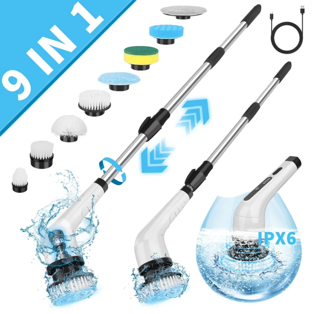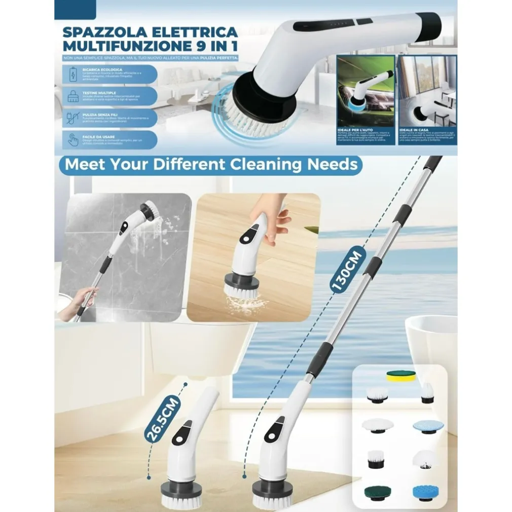 SPAZZOLA ROTANTE ELETTRICA MULTIFUNZIONE 9IN1 RICARICABILE SENZA FILI MANICO ESTENSIBILE – La tua alleata definitiva per una pulizia profonda e senza sforzo