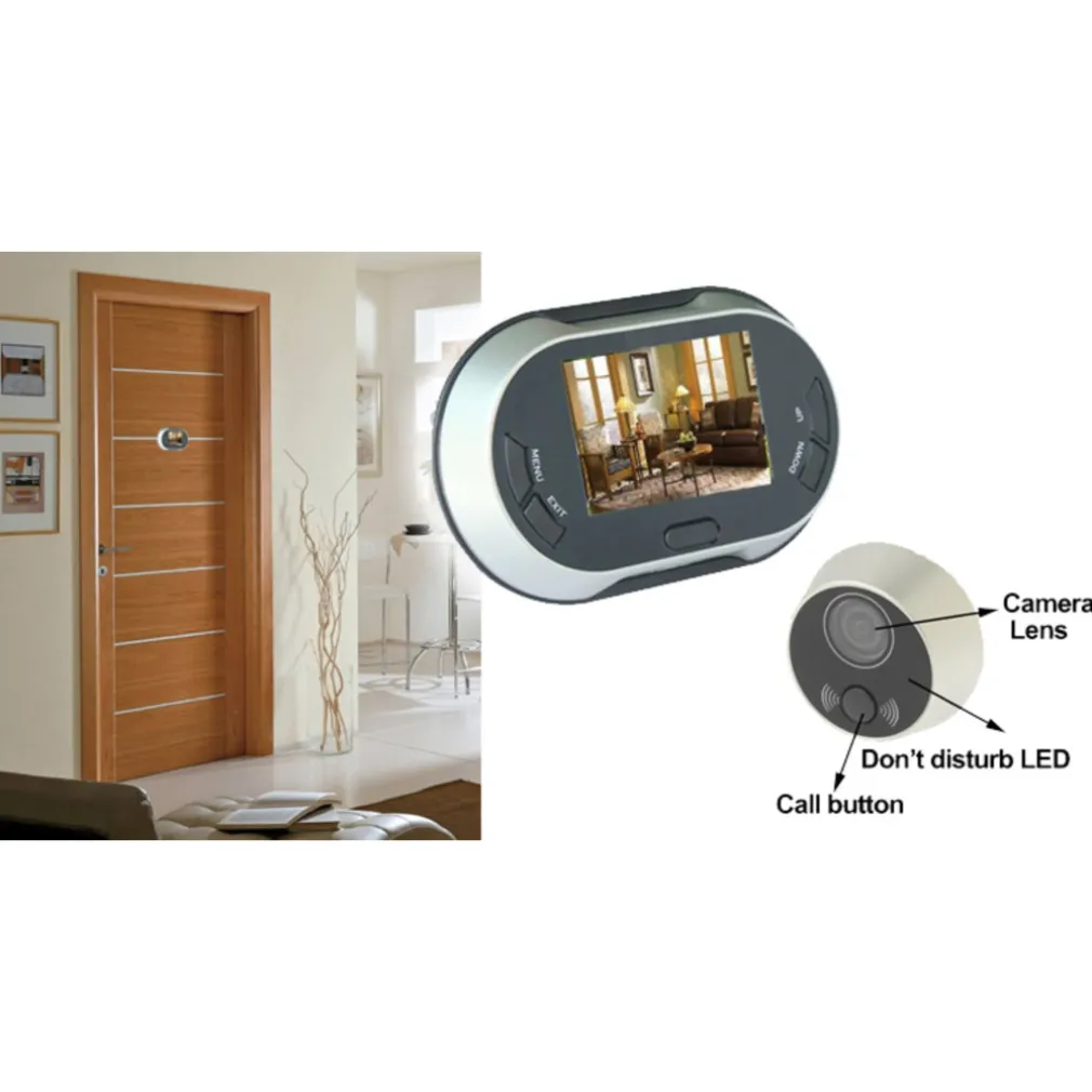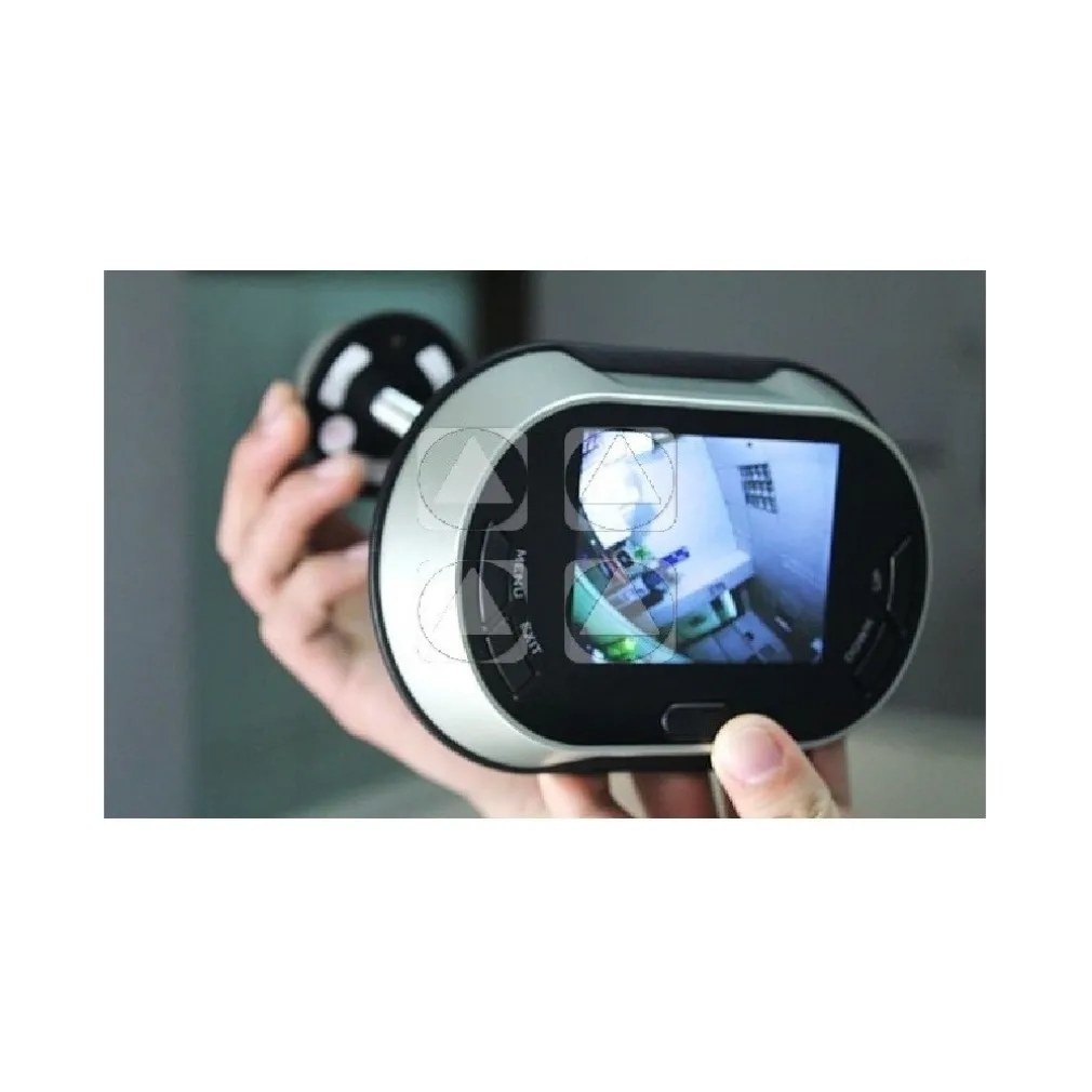 Nuovissimo prodotto con il quale avrai immagini perfette delle persone che bussano alla vostra porta, e non solo possiamo anche scattare foto quando bussano alla porta! Questo fantastico spioncino digitale è dotato di un display LCD di grandi dimensioni 3,5″ pollici a colori che vi permette di visualizzare in modo chiaro anche i minimi dettagli quando qualcuno bussa alla nostra porta. Questo prodotto innovativo, con un ampio angolo di visuale di 190°, è semplicissimo da usare, infatti basterà solo premere il pulsante presente sul dispositivo quando suonerà il campanello, per visualizzare le immagini di ciò che si trova al di la della porta. Inoltre questo spioncino digitale scatta delle immagini, che ci consentono di sapere che ha suonato in nostra assenza, una sorta di segreteria video… Dotato di un sistema a risparmio energetico che permette allo schermo di spegnersi automaticamente dopo 10 secondi dalla visualizzazione. Inoltre l’installazione è molto semplice e ruberà pochissimo tempo per ottenere uno spioncino tecnologico che apparirà come un normale oblo da porta. Questo dispositivo ci consentirà di aprire la porta evitando cosi l intrusione di persone indesiderate nella propria abitazione. Alimentato con 3 batterie AA (NON INCLUSE), la grandezza dello schermo è di 3,5 pollici. Dispone di una memoria interna grazie alla quale sarà possibile registrare tutte le immagini provenienti dalla telecamera.
