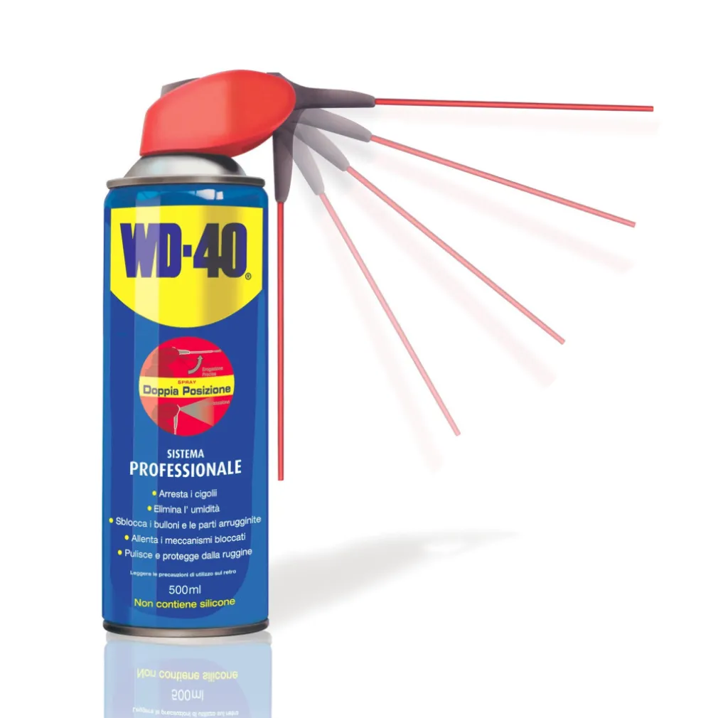 WD-40 è il lubrificante Pulitore, Sbloccante per eccellenza, utile per il controllo della corrosione, lubrificazione, pulizia e penetrazione. Ha la capacità di penetrare in spazi molto ristretti su tutti i tipi di metalli. Sebbene non essenzialmente un lubrificante puro, WD-40 viene regolarmente utilizzato per lubrificare tutti i macchinari e apparecchiature elettriche. WD-40 protegge il metallo dalla ruggine e corrosione, penetra parti bloccate o inceppati, sposta l’umidità, e lubrifica qualsiasi cosa. WD-40 è potente anche quando si tratta di grasso, sporcizia e altro. WD-40 è una miscela di prodotti chimici concentrati in sospensione in un distillato di petrolio ad alto grado. Non influenza capi di tessuti, gomme o plastiche.