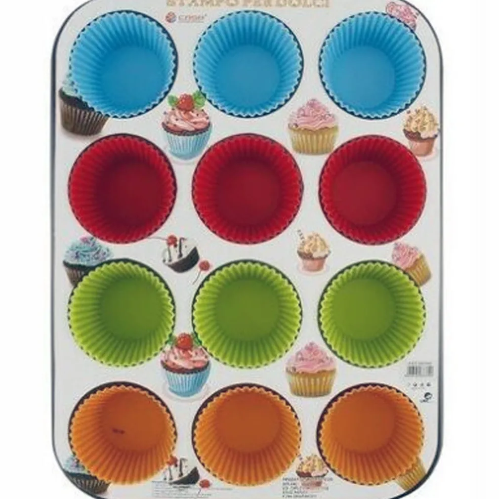 Stampo Teglia per 12 Muffin Cupcake in Acciaio Antiadere con Pirottini Colorati