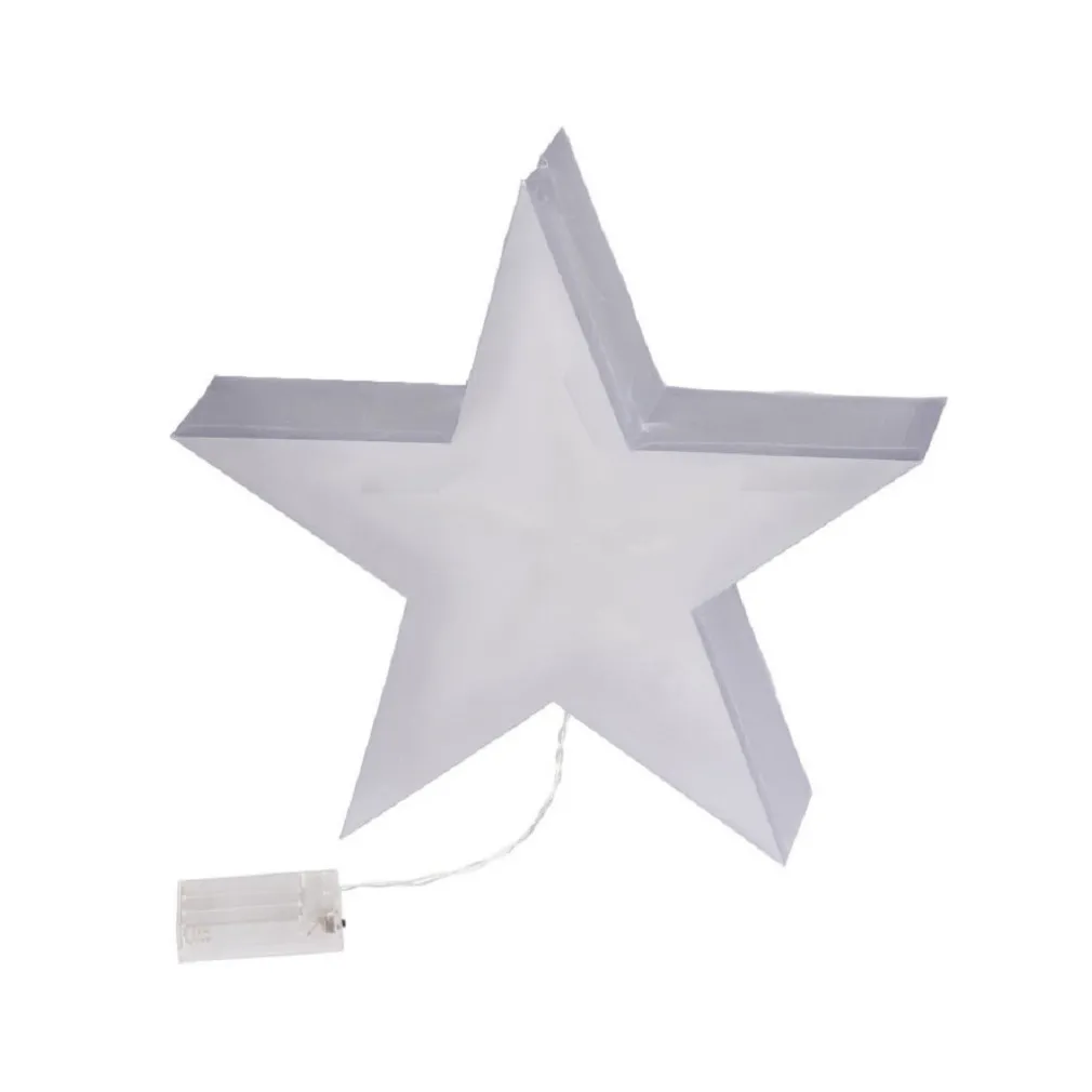 Stella natalizia olografica a 10 LED diametro 35cm x 10cm di spessore, funzionamento a batterie, ideale per arredare casa, ufficio o negozi.