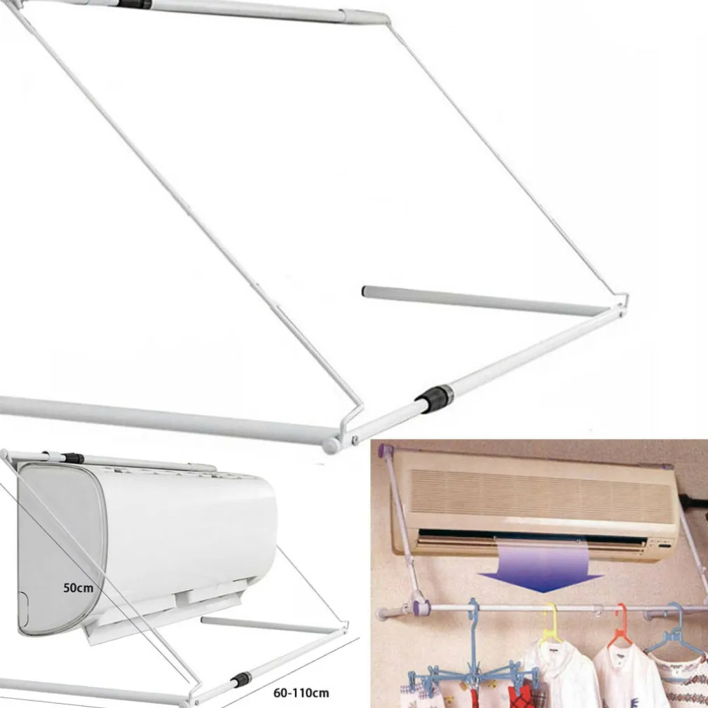 Nuovo stendino per condizionatore estensibile Grazie al calore emesso dal condizionatore permette l’asciugatura della tua biancheria Utile in tutti quegli alloggi dove, per questione di spazio, non è possibile stendere la biancheria all’esterno Dimensioni. H 50 x P 34 X L 60 estensibile fino a 110 cm Materiale: Metallo