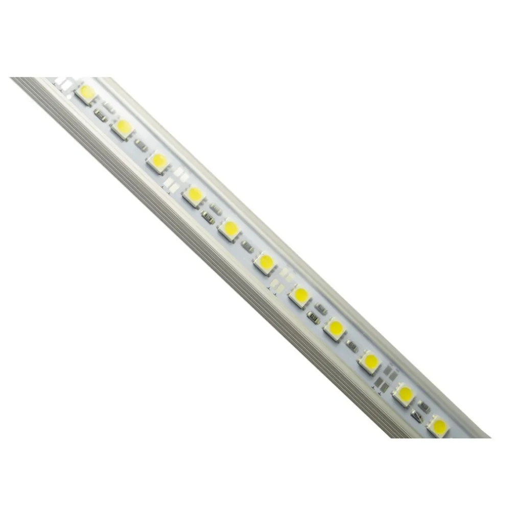 Barra led rigida inserita in un profilo in alluminio con copertura dei led in plexiglass, ideale da utilizzare al posto di strisce flessibili. La barra và alimentata a 12v (2a per ogni metro di striscia) . Il profilo in alluminio garantisce una dissipazione termica ottimale e la copertura in plexiglass evita che lo sporco vada sui led. L’immagine è indicativa