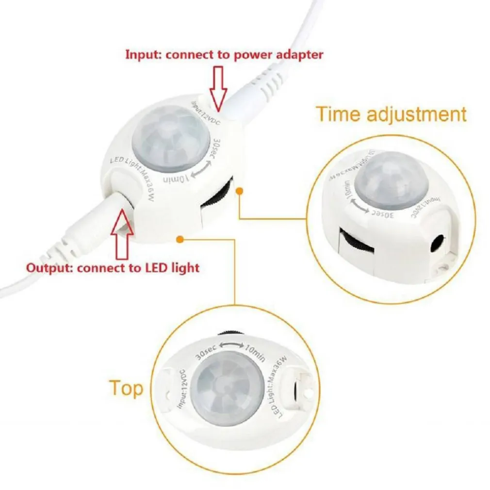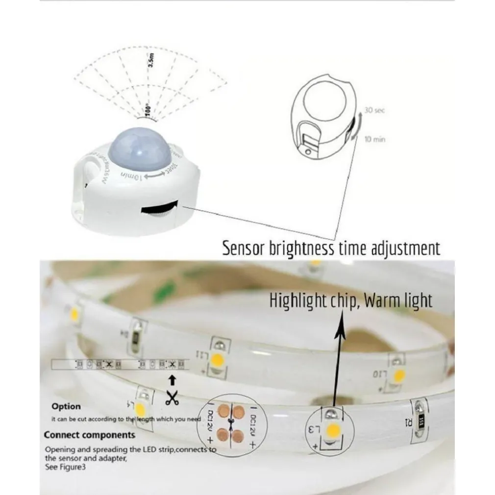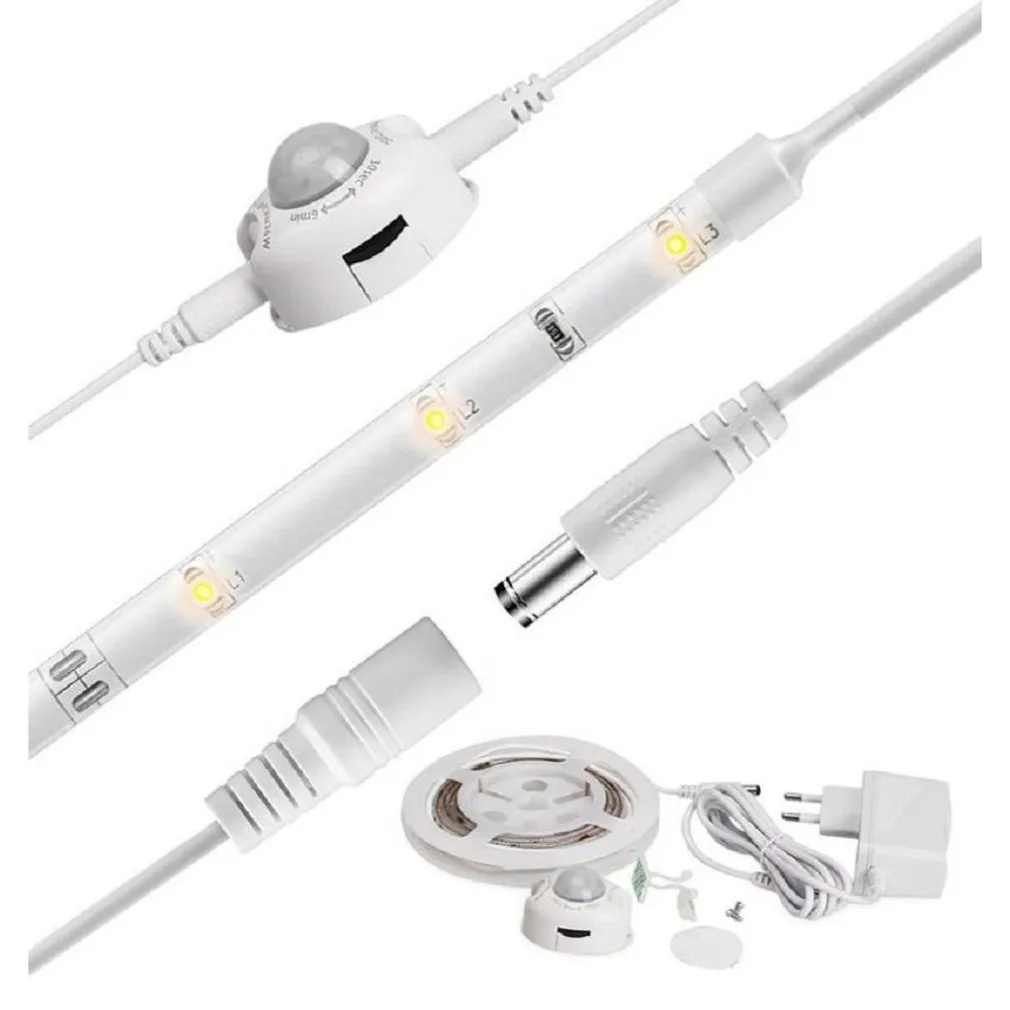 STRISCIA LED CON SENSORE DI MOVIMENTO LUCE BIANCA 6000K BORDO LETTO 12V 0,5A