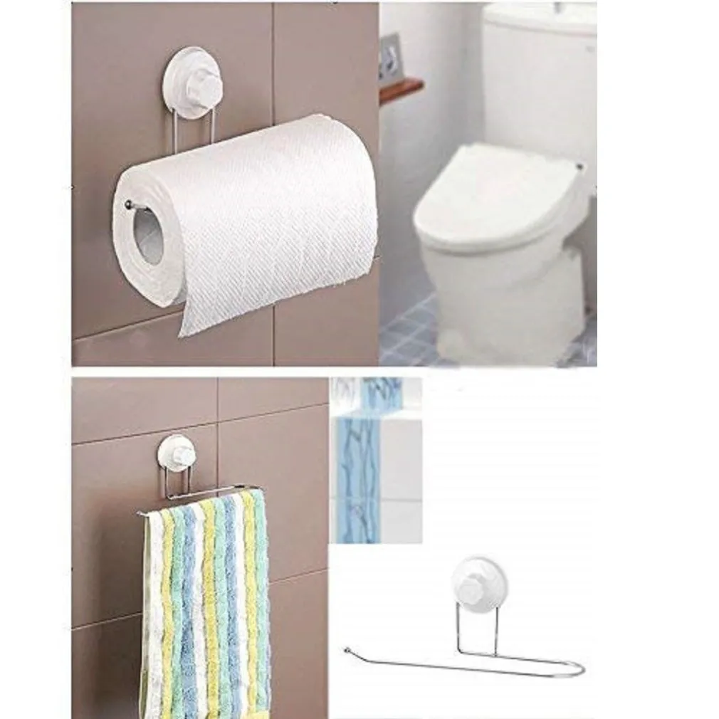 SUPPORTO PORTA ROTOLO CARTA SCOTTEX MULTISTRAPPO CON VENTOSA PLASTICA ACCIAIO A MURO PARETE ACCESSORI BAGNO.