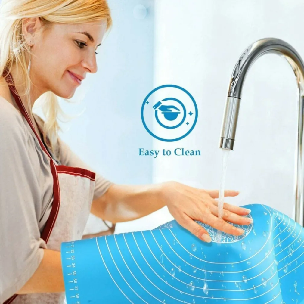 IMPUGNATURA ANTISCIVOLO E SUPERFICIE ANTIADERENTE: Il tappetino per impastare da forno 2 in 1 è stato progettato per semplificare la vita di tutti. Utilizzando la tecnologia antiscivolo impermeabile, i tappetini in silicone aderiscono saldamente alla base di qualsiasi superficie liscia, mentre lo speciale rivestimento antiaderente impedisce che qualsiasi tipo di cibo si attacchi o macchi la superficie. Le misurazioni di facile lettura aiutano a gestire il controllo delle porzioni e assicurano che le tue creazioni risultino sempre perfette.