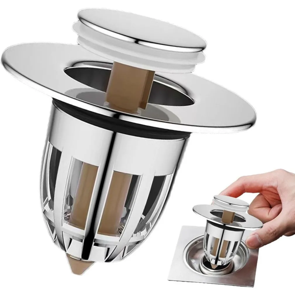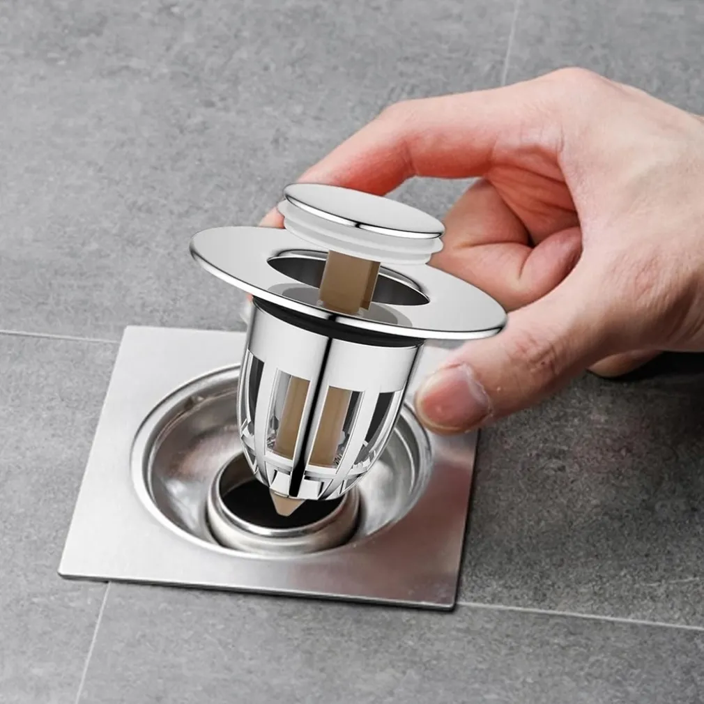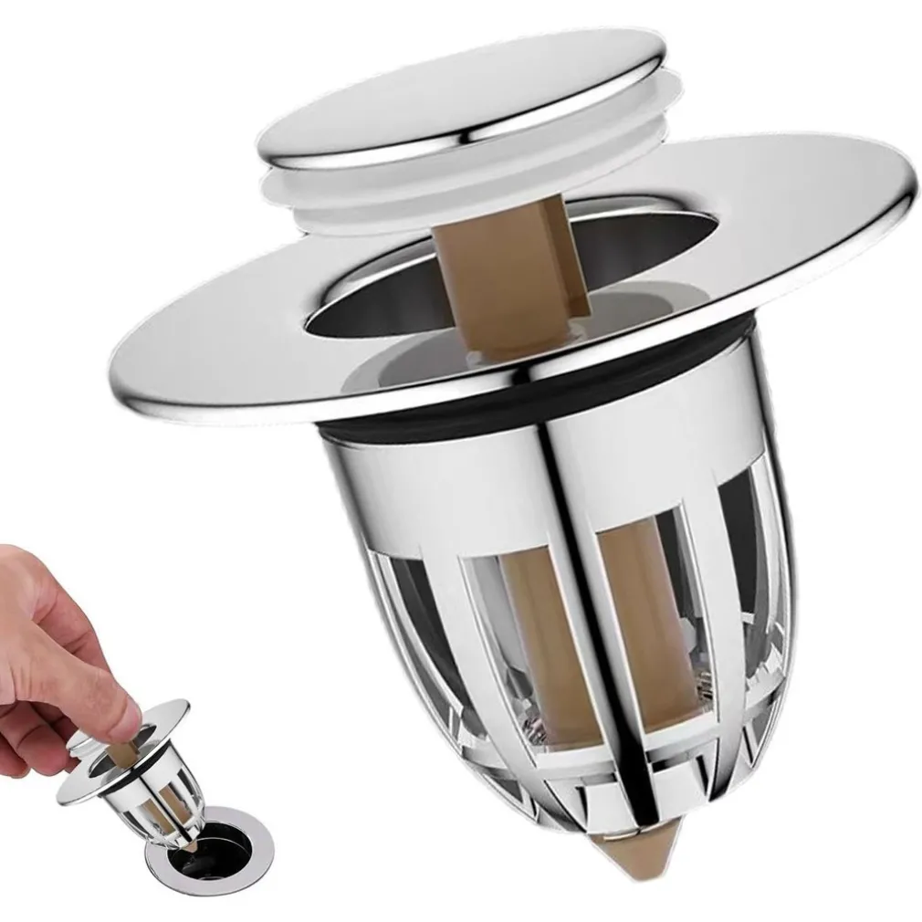 Tappo di Scarico per Lavandino Bagno Filtro in Acciaio a Pressione Copri Scarico