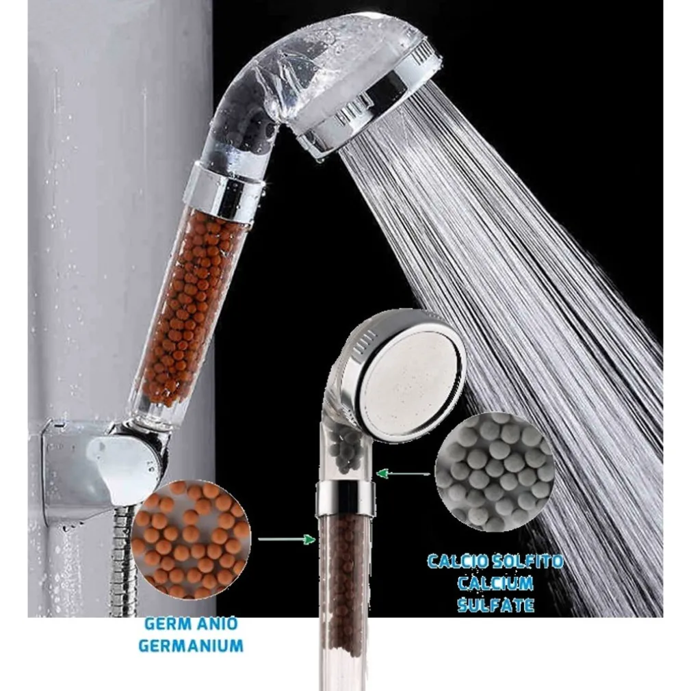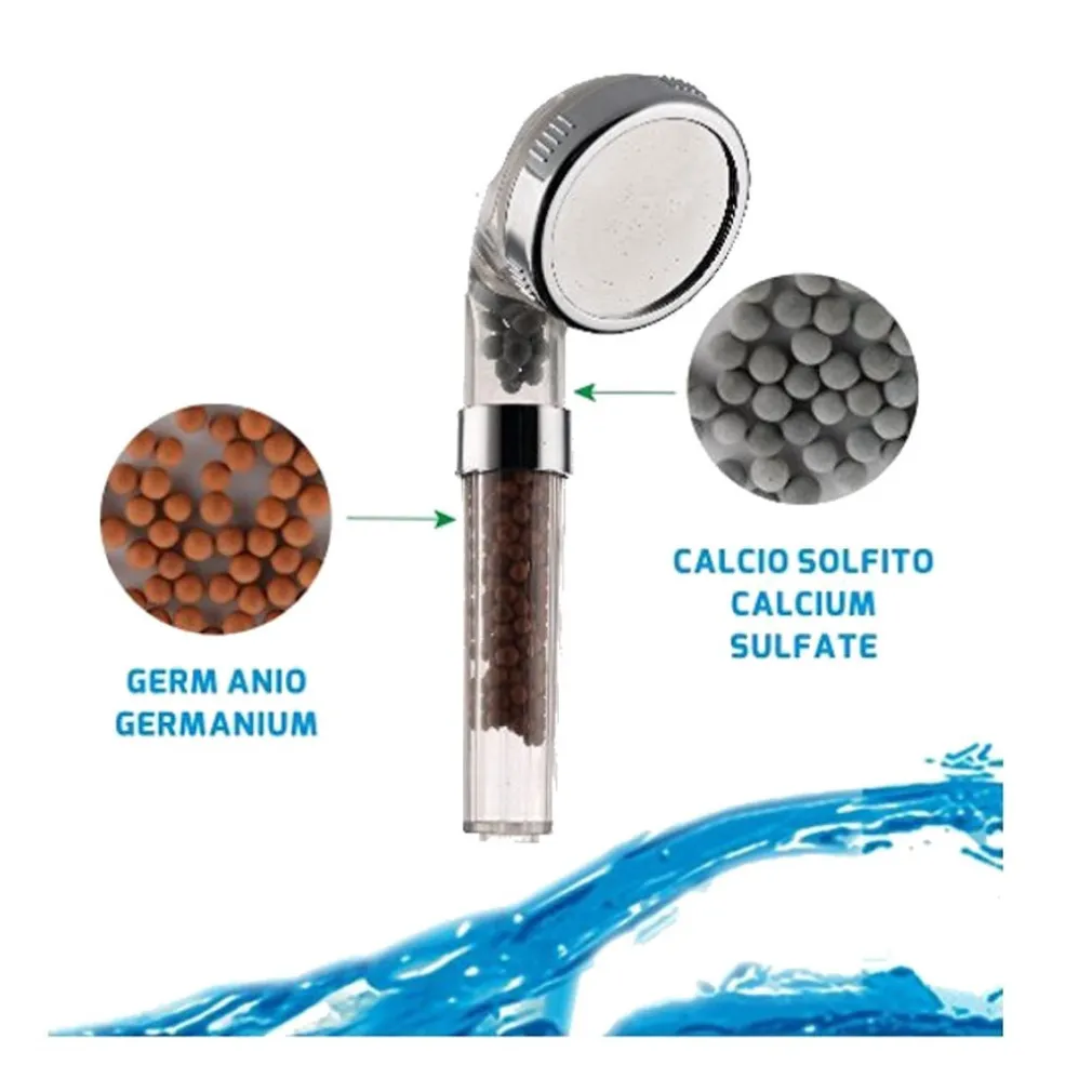 - Soffione doccia con pietre minerali: carboni attivi, pietre di zeolite, vari minerali