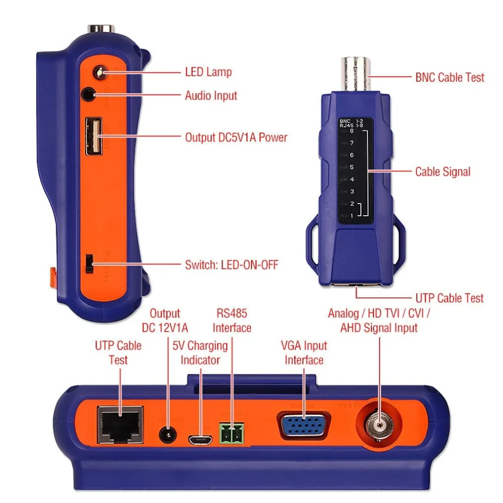 Pratico comodo ed esclusivo tester all in one per telecamere, ideale per tutti i tipi di telecamere, HD – CCTV – ANALOG – AHD etc. Ideale anche per i test dei cablaggi se realmente funzionanti. Pratico in quanto dotato di fascia da polso per iniziare i test senza ingombri o necessità di monitor o dvr esterni.