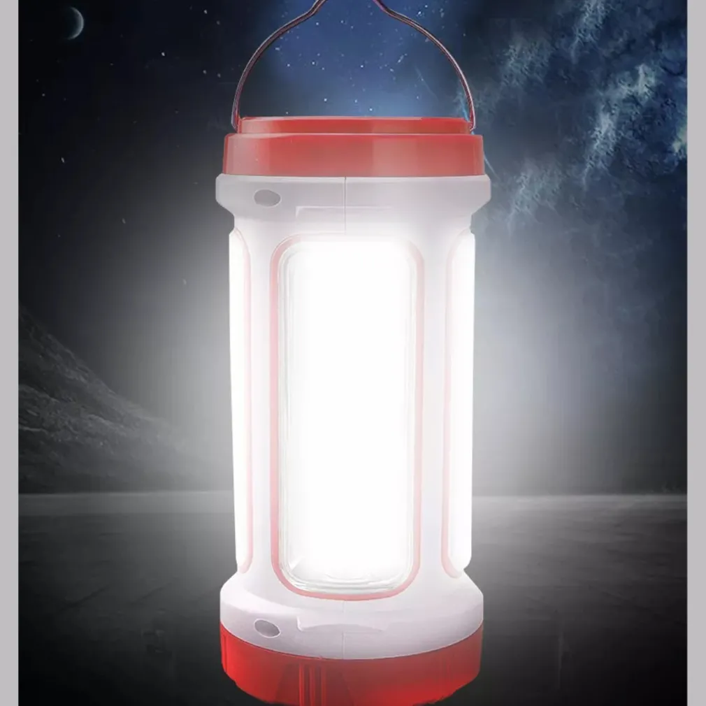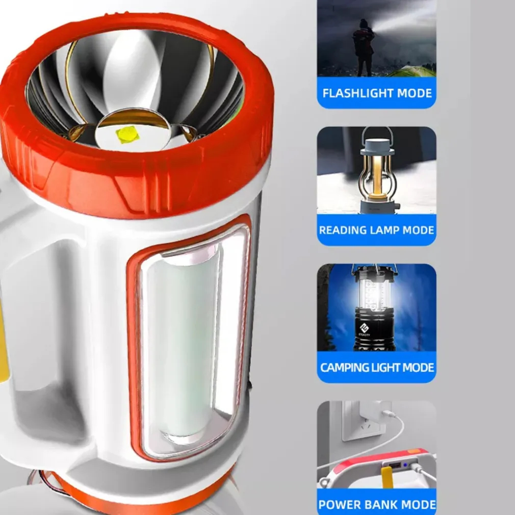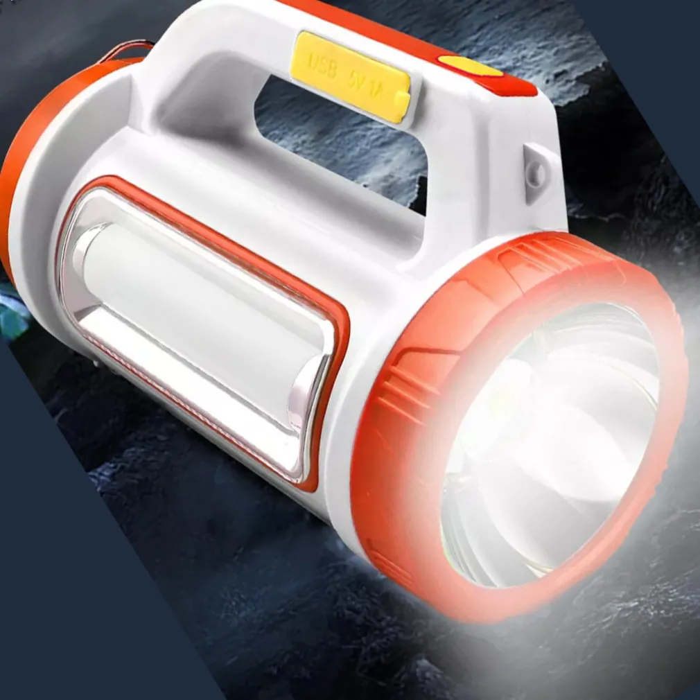 Torcia da campeggio con luce fortissima a LED. E’ dotata anche di una luce a 1 LED sul laterale per usarla come lanterna grazie al manico superiore. Utile come luce di emergenza in garage o in giardino. Dispone di una batteria interna da 2000mha da poter utilizzare anche come powerbank. Ricaricabile al sole, impermeabile IP65