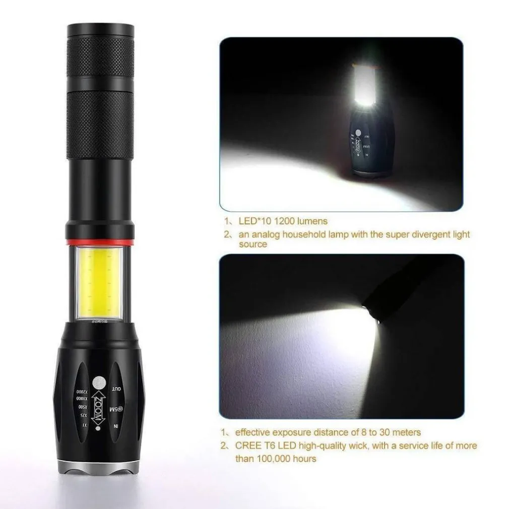TORCIA TATTICA MILITARE ZOOM COB RICARICABILE ALTA LUMINOSITA’ T6 LED TE-B0044