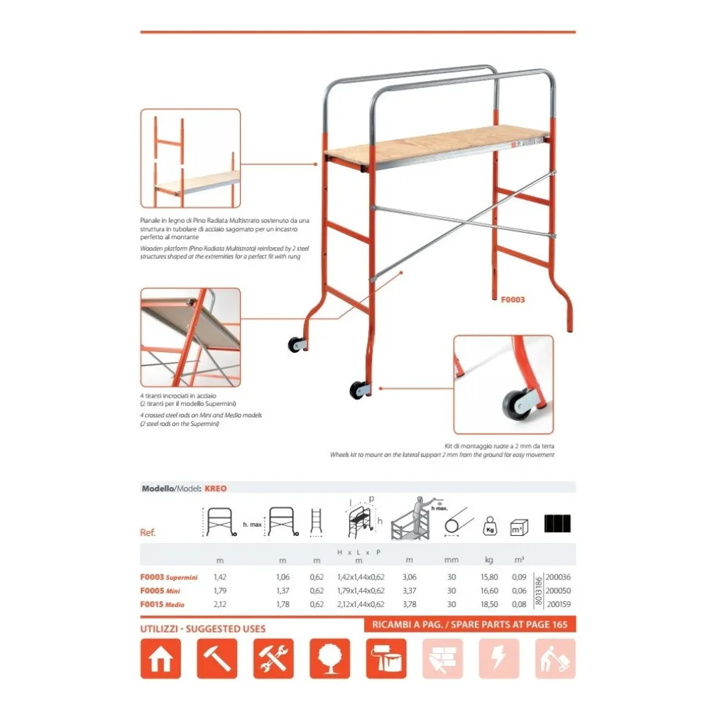 Trabattello in acciaio verniciato con pianale rinforzato, adatto per tutti i lavori di bricolage e faidate in casa o all’esterno.