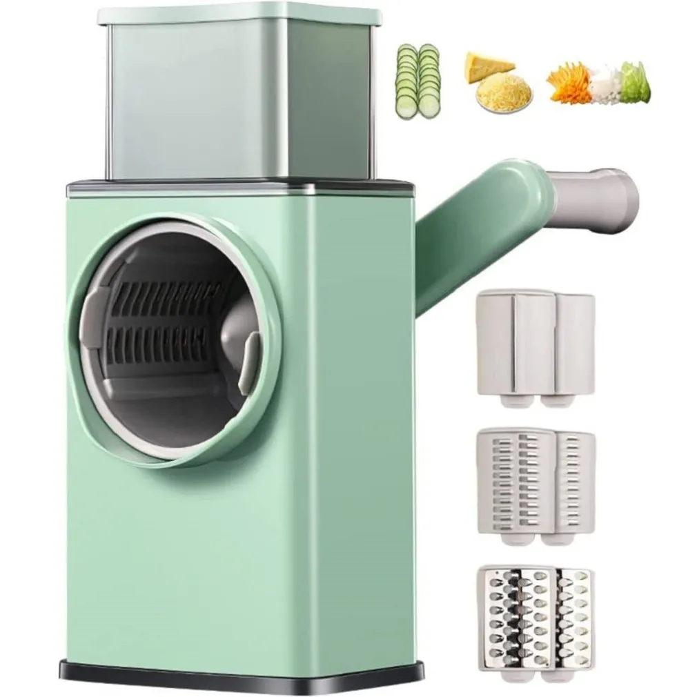 Grattugia per formaggio rotante. Questa è la nostra più recente grattugia per formaggio portatile, con una bocca della tramoggia più ampia e una lama più lunga, una base più robusta, un’installazione più semplice, una maniglia più semplice e il design salvaspazio rendono questa affettatrice rotonda per verdure più efficiente per la preparazione del cibo e la grattugia manuale più popolare come regalo per la mamma per la festa della mamma.