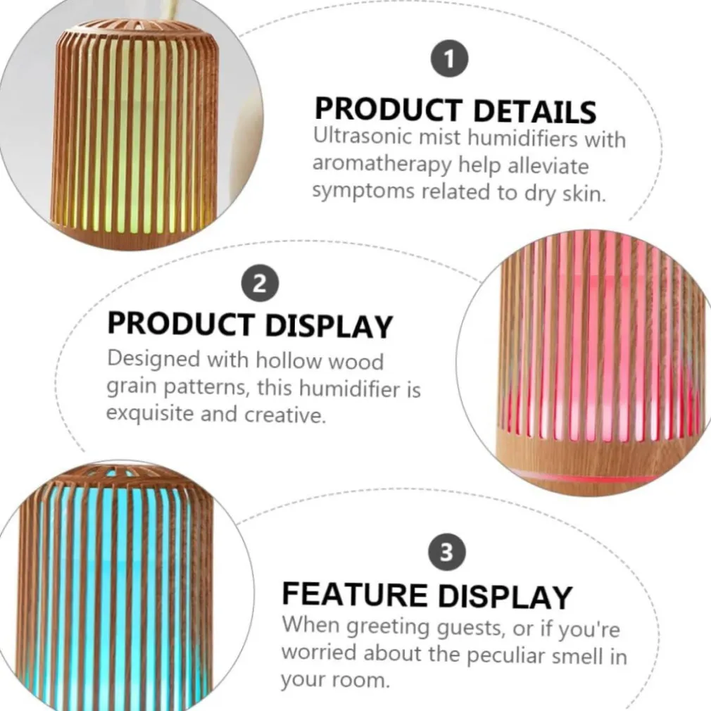 - Umidificatore per la Camera da Letto: Non solo un semplice diffusore, ma una vera e propria decorazione che aggiunge un tocco di stile alla tua casa, funzionando anche come una Luce Notturna soffusa.