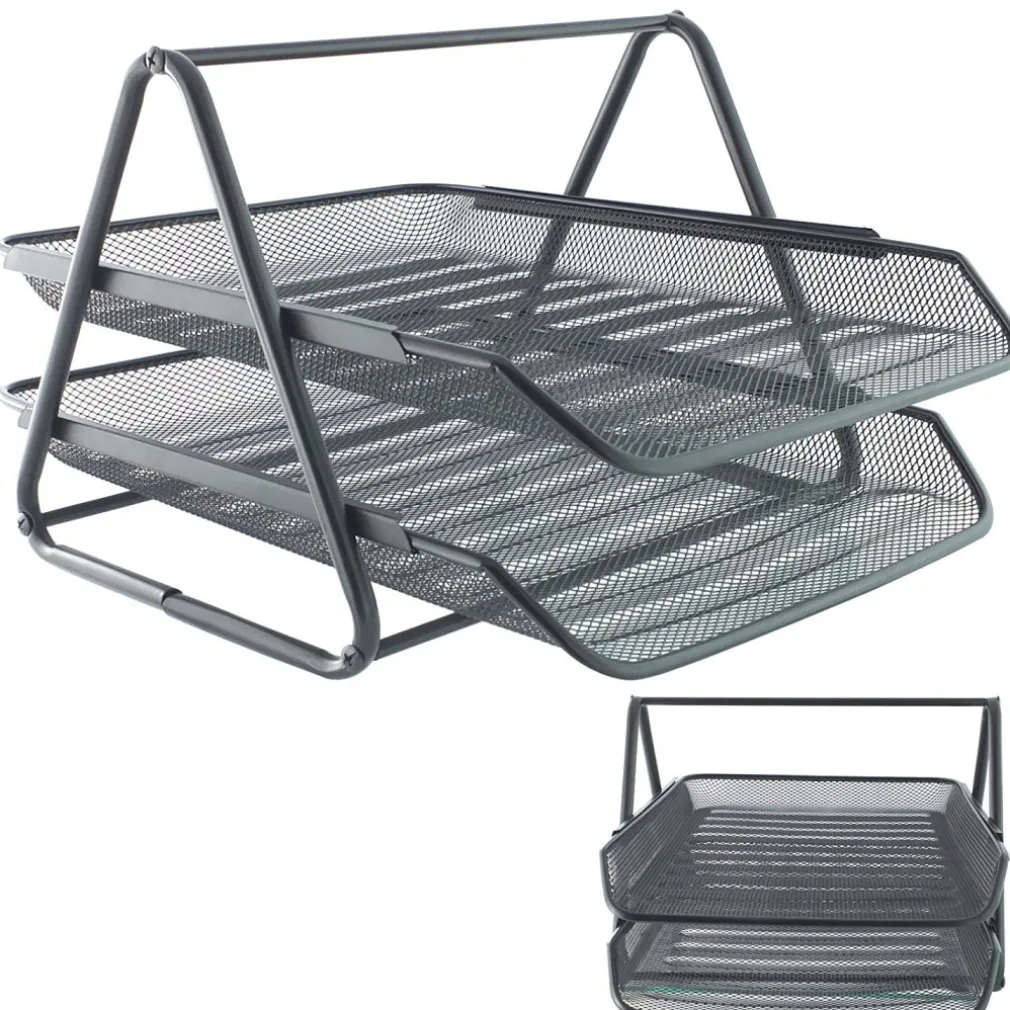 Due Ripiani Spaziosi: Con due ripiani ampi, avrai spazio sufficiente per organizzare i tuoi documenti, cartelle e altri oggetti da ufficio in modo ordinato. Questa vaschetta ti aiuterà a mantenere tutto a portata di mano.