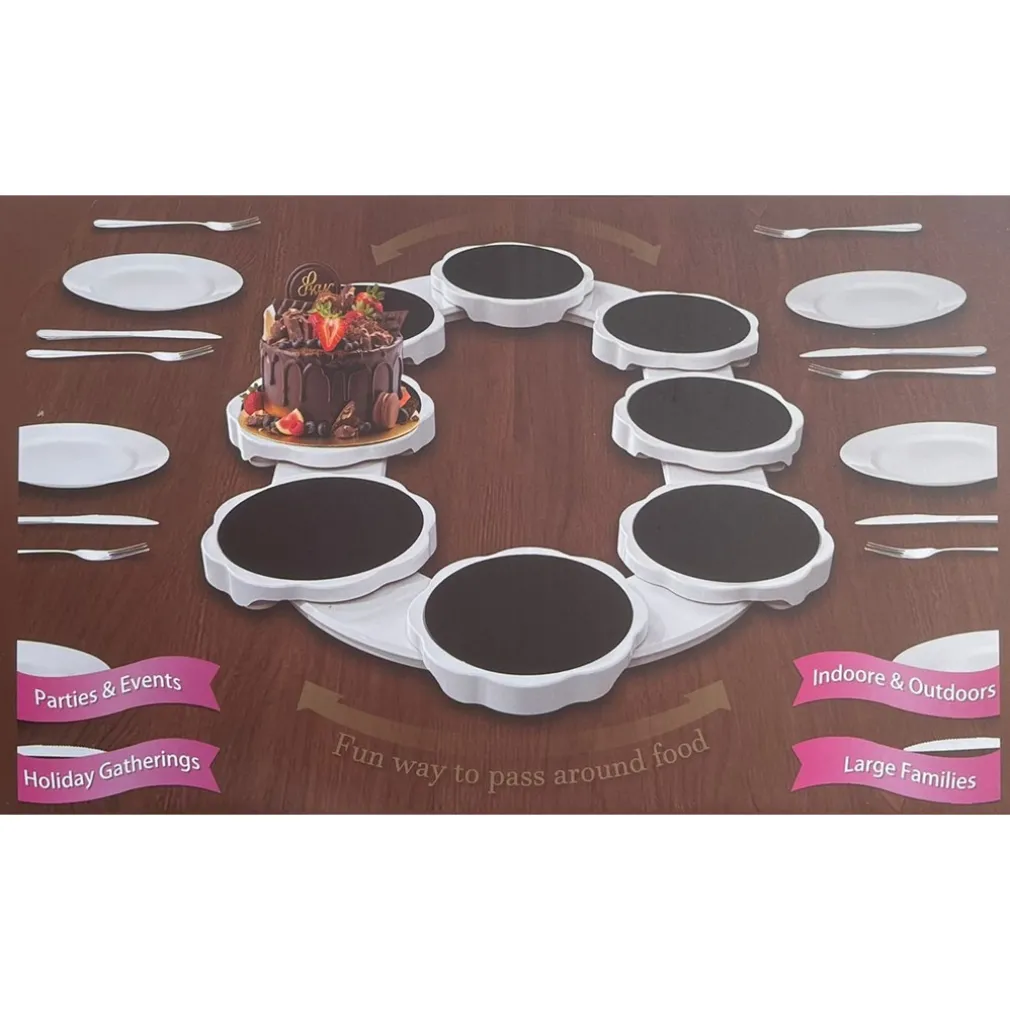 L’immagine mostra un vassoio girevole centrotavola pensato per chi desidera comodità e ordine durante pranzi, cene, feste ed eventi. La sua struttura innovativa, compatibile con la maggior parte dei tavoli, lo rende perfetto soprattutto per superfici larghe oltre 40″ (circa 1 metro). È uno strumento capace di semplificare la vita familiare e dare un tocco professionale e funzionale anche alle tavolate più numerose: un modo divertente per passarsi il cibo, adatto sia all’interno che all’esterno, ideale per riunioni festive, famiglie numerose e momenti rilassati in cui ci sediamo, ci rilassiamo e ci godiamo la prossima riunione.